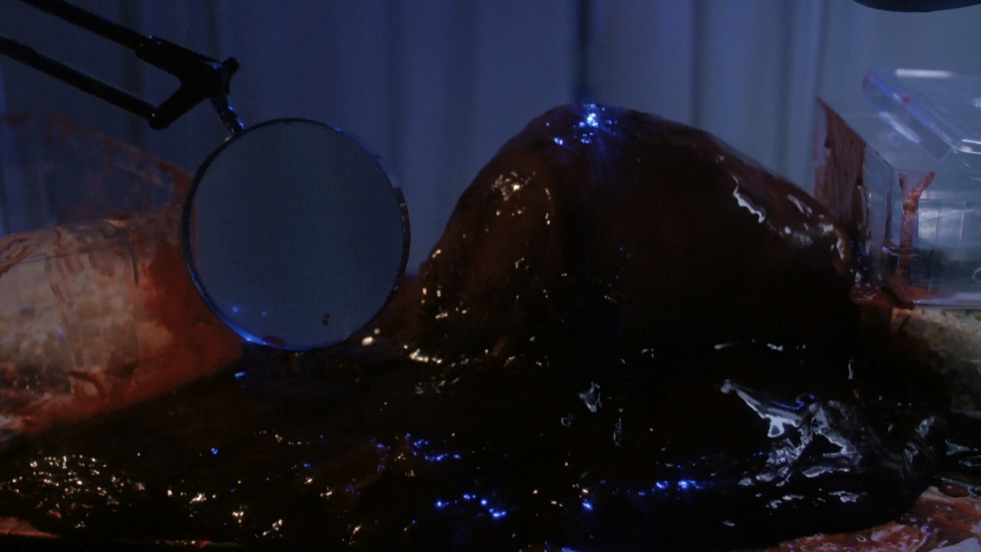 transfer looks comparable to the label's other Concorde titles; it's a major step up over the VHS, obviously, and likely as good as this film will ever look given the limited production value. The DTS-HD MA English stereo track also gets the job done just fine. The film can also be played in "Nightmare Theater Mode" with hostess Katarina Leigh Waters cutting up with a toy guitar and sharing way background info about this film than any sane human being ever needed while offering the cutest pronunciation of the word "mutant" you've ever heard. Apparently game for talking about anything in his filmography, Ermey appears for a very cheerful and candid interview (4m27s) in which he praises Stevens' directorial chops while admitting he did this film strictly to pay the rent. Also included are the film's trailer (in super lo-res quality) and bonus trailers for Deadly Dreams, Savage Attraction, One Dark Night, Slaughterhouse Rock, Hide and Go Shriek, and Blackout.
