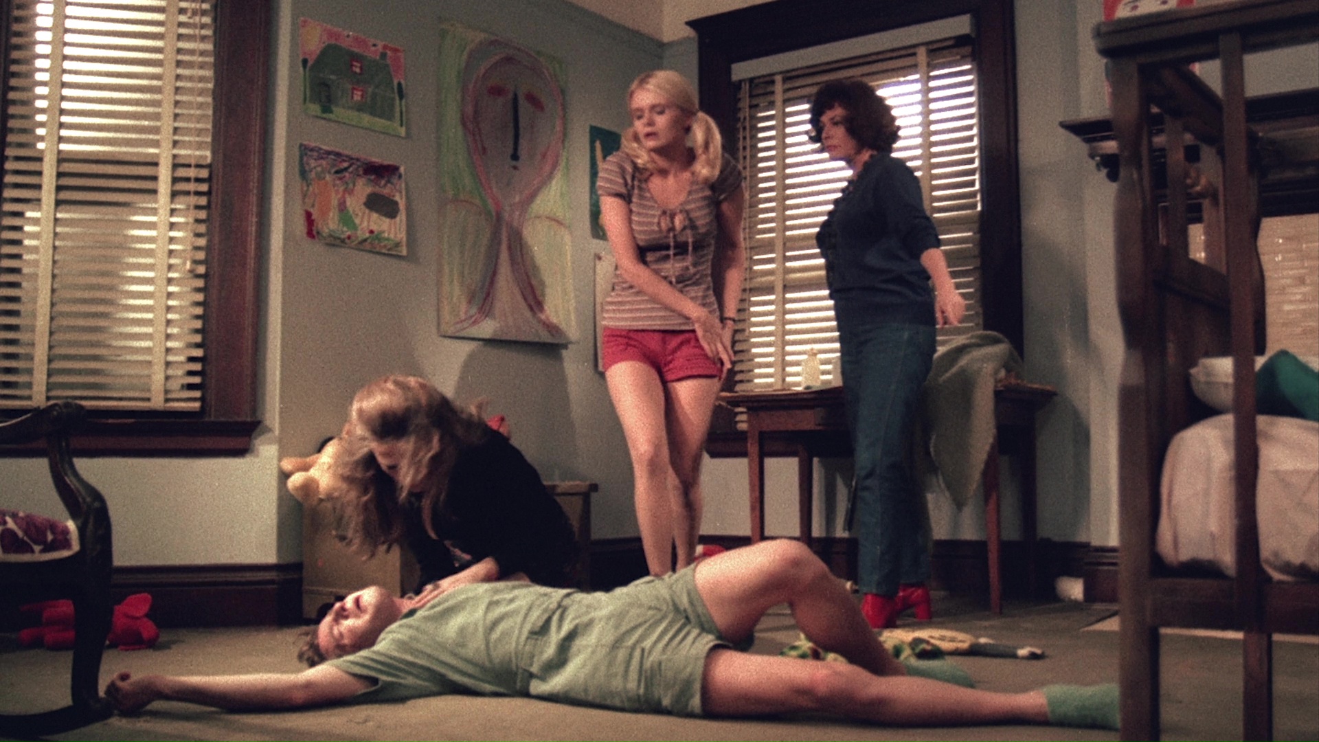 an even more robust Blu-ray in 2014. Transferred from the original negative, this anamorphic transfer is practically spotless and features much more detail than before. Colors are a bit more naturalistic than the loud palette of the Image version, and the restoration of the theatrical framing gives the film a more intense, off-kilter atmosphere than the TV-style framing of prior discs. As with their release of Bloody Birthday, it's also brighter than before so if you want that full gloomy '70s ambiance, you want to adjust your TV a little. There's only one video extra, but it's a killer: the wild original theatrical trailer, uncovered and presented on video for the first time. This nutty piece of promotion is