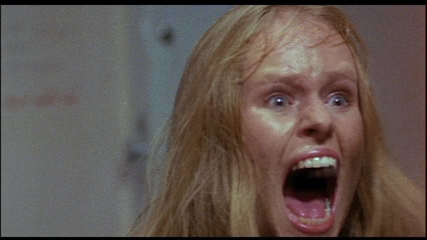 The 2013 revisit from Scorpion Releasing comes packaged as part of their Katarina's Nightmare Theater line with hostess Katarina Leigh Waters in optional wraparound segments, kicking off with her waking up from a nightmare (of course) before she dives into various facts and figures about the talent behind the film. The transfer itself is probably about as good as you'll get; thankfully it still looks naturally grainy (as any attempts to smooth this puppy out would be disastrous), and colors look very healthy. There's some image jitter around the 83-minute mark that seems to be a film printing issue in the original materials, but otherwise it's smooth sailing and nicely spread out over a dual-layered disc. The mono audio sounds about the same as it