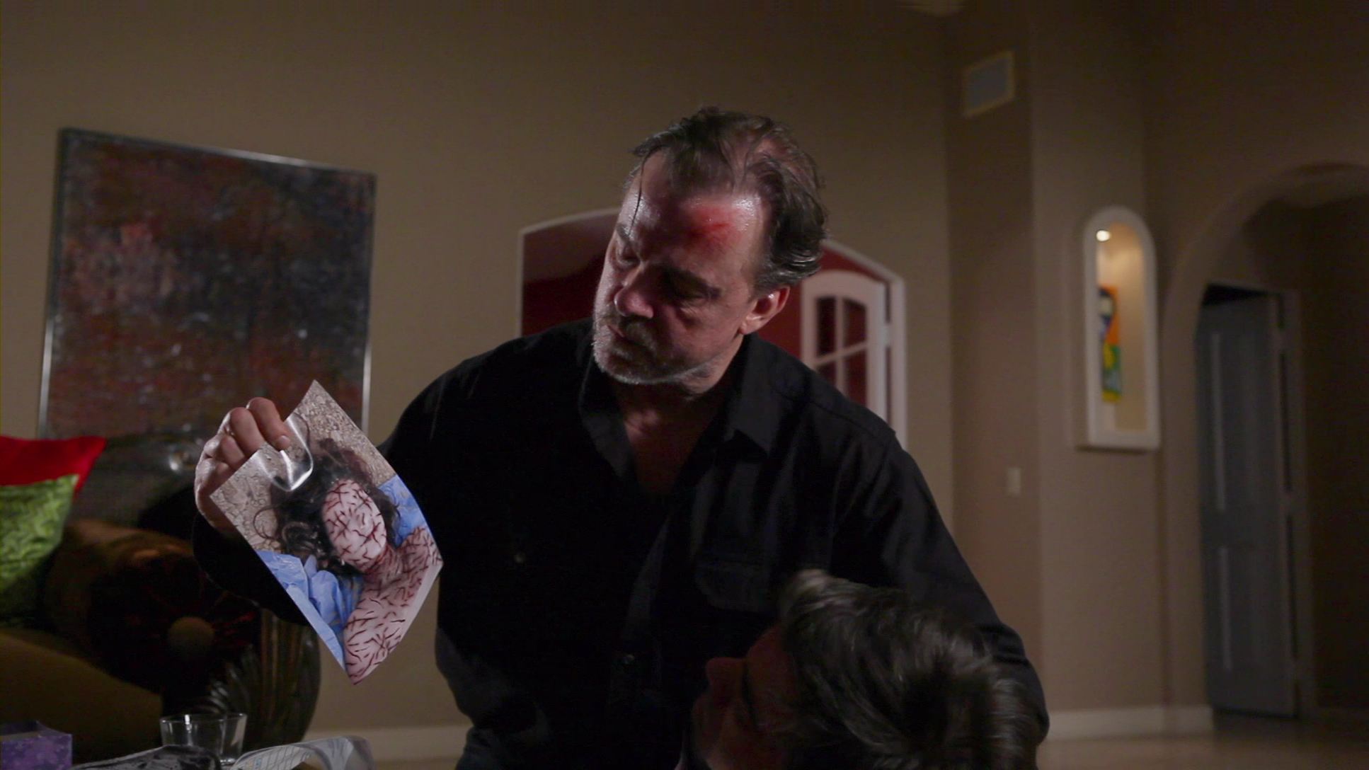 First things first: despite the Saw-inspired cover art and the promise that this is the "unrated director's cut," A Thousand Cuts is not a horror film and would possibly even squeak by with a PG-13 rating if anyone submitted it. What we have here instead is a chamber drama that sounds like a home invasion thriller but plays out more like a standoff between two deepl