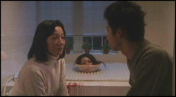 More comic than usual, this Tomie tale features some memorable sequences blending the quirky and the grotesque after a fairly lumbering middle act in which virtually nothing happens. This film is tailor-made for DVD, as impatient viewers can watch the first half hour, then skip on to the 55-minute mark or so without missing much of consequence. Obviously the slow pacing is something the series had already established by this point, but in this case the slow bits could charitably be described as glacial. Fortunately Shimuzu's unerring eye for striking compositions and subtle, chilling visuals carry the film over the slow patches, and when he finally breaks out the fireworks, the results are striking indeed. None of the actors get much of a chance to stretch themselves, though Sakai (sans body) gets a few nice moments during a powerhouse showdown with the world's most deluded, domineering mother.