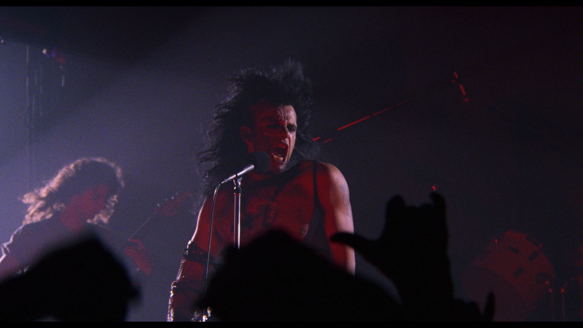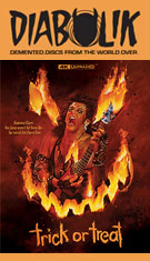 Fans of Trick or Treat have had to put up with some really lousy home video editions over the years including a fuzzy VHS release from Lorimar and a very poor quality full frame DVD from budget label Platinum in 2002. In 2014, German label NSM Records issued a digibook release (with multiple design options) featuring a Blu-ray, DVD, and Fastway soundtrack CD, but the transfer was just okay from a somewhat murky theatrical print. The biggest problem was the audio, which was a poor quality mono mix far removed from the effective and very active original Ultra Stereo mix. All of those options were rendered completely obsolete when the film finally got the edition it deserved as the inaugural theatrical feature release from Red Shirt Pictures as part of its deal with Synapse Films, initially released as a UHD, Blu-ray, and soundtrack CD combo with multiple packaging options just in time for Halloween in 2024. Again the soundtrack CD is the general release one with the Fastway songs; to date the Christopher Young score has only been released as part of the limited two-CD Cinema Septet set. The presentation here is everything you could want, with the new restoration from the original 35mm camera negative (with HDR10-compatible Dolby Vision on the UHD) looking superb throughout with natural film grain, impressive detail, and gorgeous colors including lots of bright primary colors all over the high schoolers' outfits. You get two audio mix options here (DTS-HD MA), the original 2.0 surround one and a new 5.1 mix that has some fun with split surround effects including great separation during the shop workroom scene and the big live show finale in particular. Optional English SDH subtitles are also included.