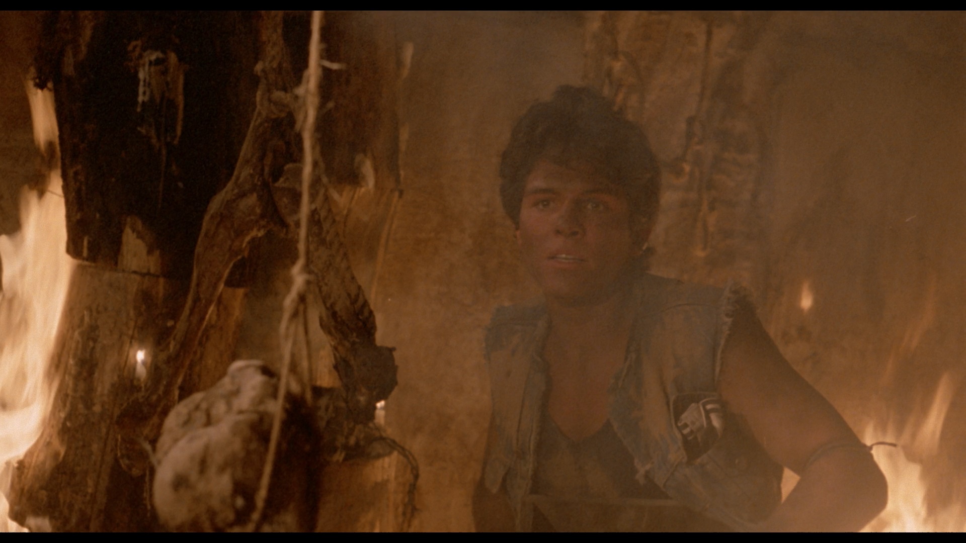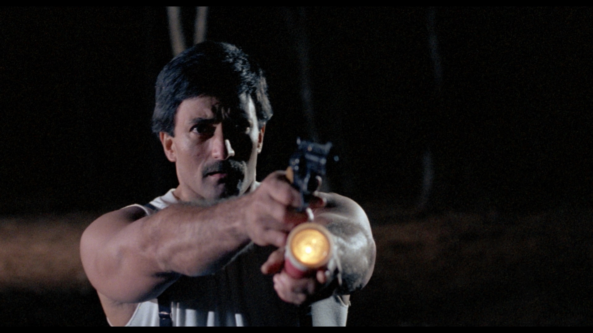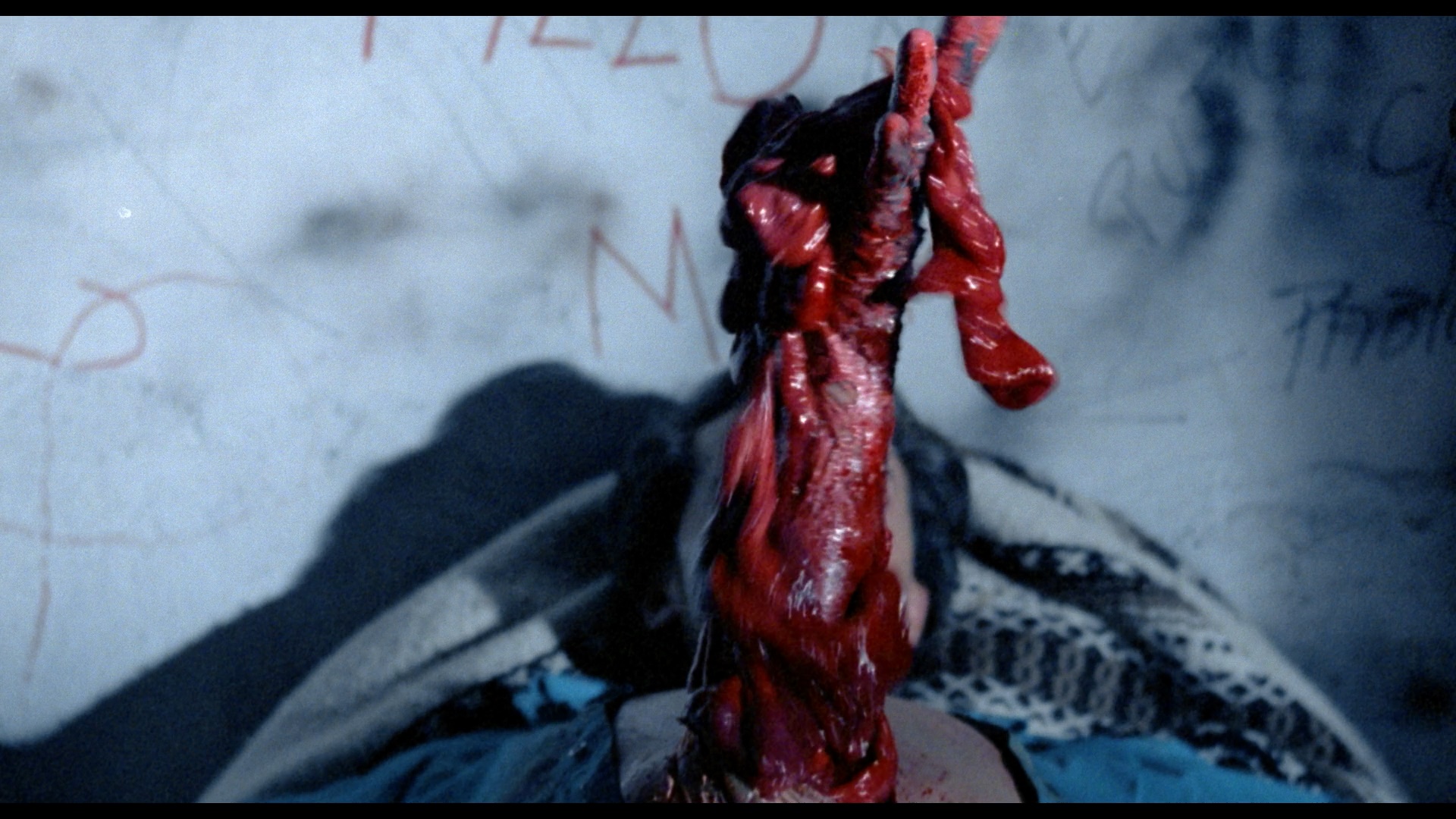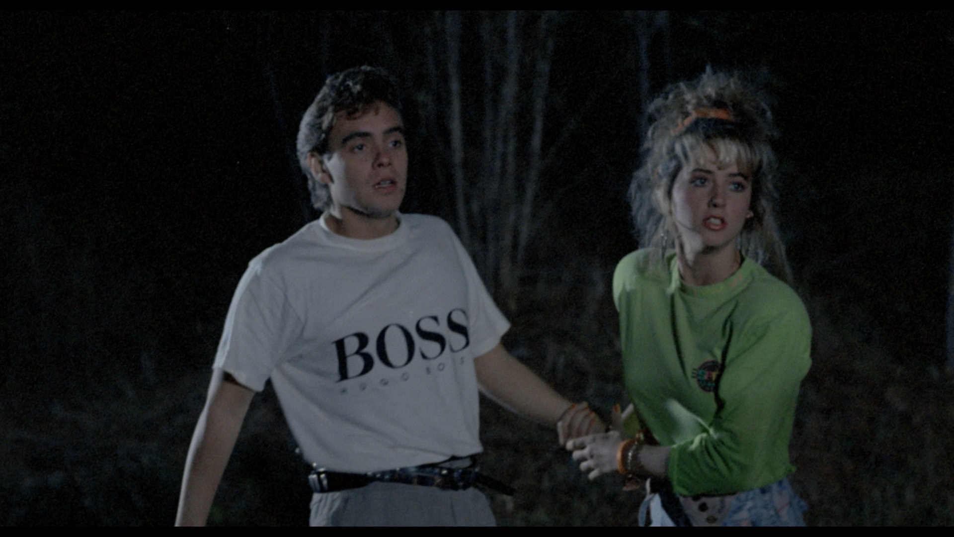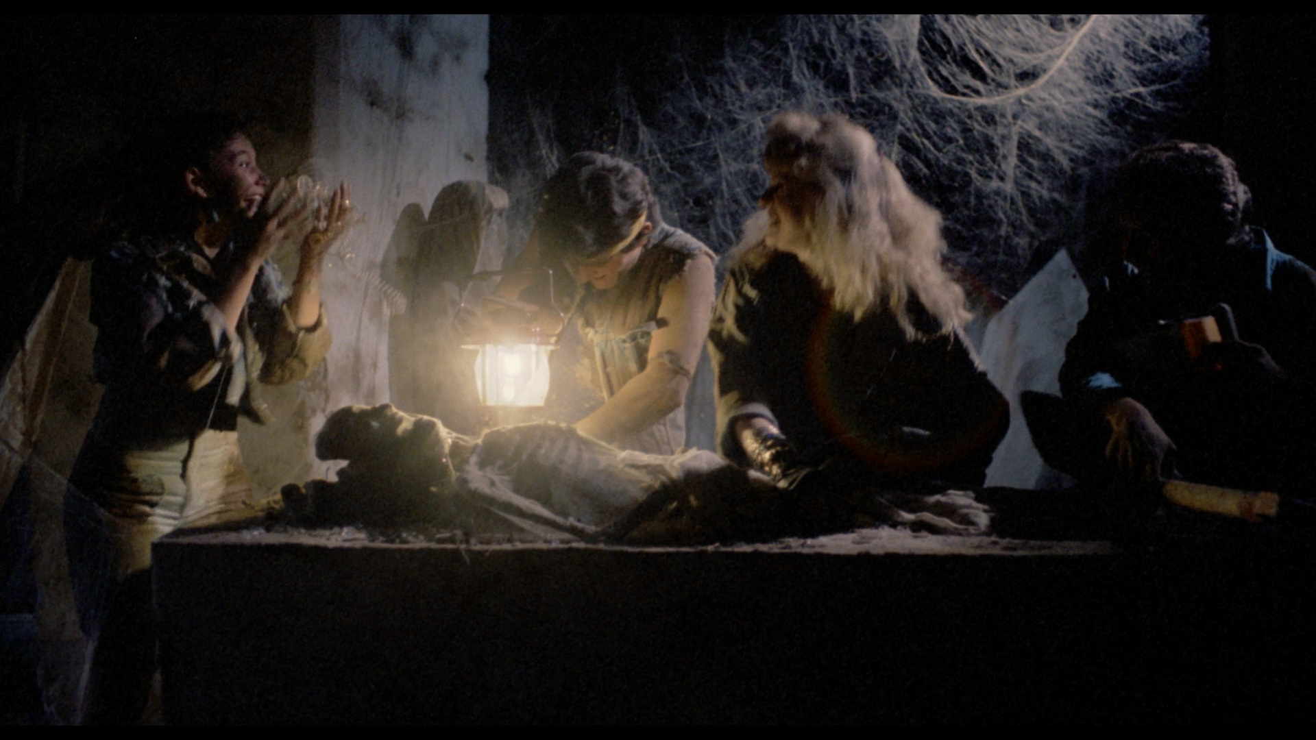 The DTS-HD MA Spanish mono track also sounds pristine and really shows off that effective, percussive score; optional, newly-translated yellow English subtitles are provided. As with other recent VS releases, a lossy Dolby Digital track is also present. A new audio commentary with the gang at The Hysteria Continues is another upbeat and entertaining hangout with the slasher-savvy gents, with plenty of chat about late '80s horror, Mexican genre films including the work of René Cardona Jr., the debate over whether this really is a slasher movie, visual similarities to Lordi and Friday the 13th Part VII: The New Blood, and the backgrounds of the various performers including the "Mexican Queen of Tik Tok." Then "Unearthing the Past" (19m25s) is an English-language interview with Galindo Jr. (who looks like he must have been ten when he directed this) covering the market demands of the time (with Don't Panic geared for Americans versus the Latin one for this film), the genre directors who influenced him, the personal angle he brought to this story, the challenges of shooting so much at night, the paltry state of local prosthetics, and the efficient production that came in on time and budget.