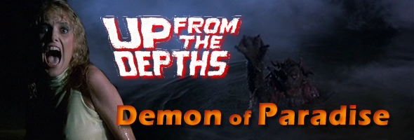 mastermind behind films like T.N.T. Jackson and Vampire Hookers), who took over directing for 1987's Demon of Paradise. Stock footage and recycled James HOrner music from Humanoids from the Deep give the game away immediately as another Corman quickie, with a bunch of yahoo fisherman carrying dynamite on their boat accidentally unleashing a scaly terror on a Hawaiian resort. This time the prehistoric menace can walk and wave its webbed hands around. The terrifying monster in a rubber suit goes on a rampage against the hotel guests and the hula-dancing locals, leaving a marine scientist (former model Witt) and local sheriff (Equalizer 2000's Steis) to put an end to the ferocious party crasher.