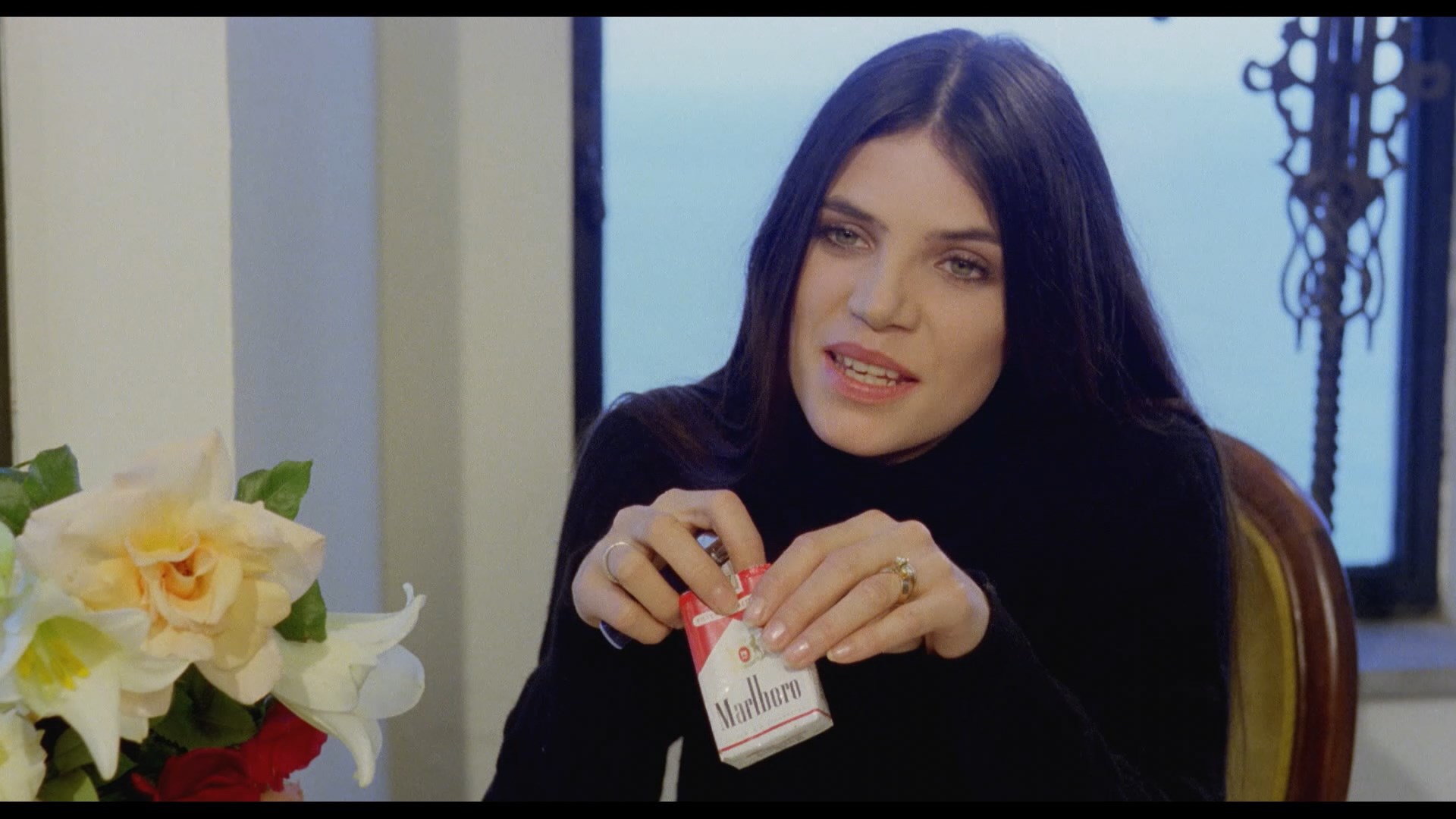 that doesn't seem to bother her mother-in-law (giallo veteran Stewart) who lives with them. The following afternoon, the rapist cop shows up with the purse she dropped at the scene, so naturally she lures him to an outdoor shed where she fatally whacks him over the head with a mallet -- in front of Francesco's disbelieving eyes. She confesses all, admitting she's like the promiscuous heroine of his first novel, Black Angel, a development that actually turns him on and leads to new literary inspiration. However, her continuing sexual adventures take a dark turn when her lovers start turning up murdered and castrated. Is Arabella on a killing streak, or could there be another motive at work?