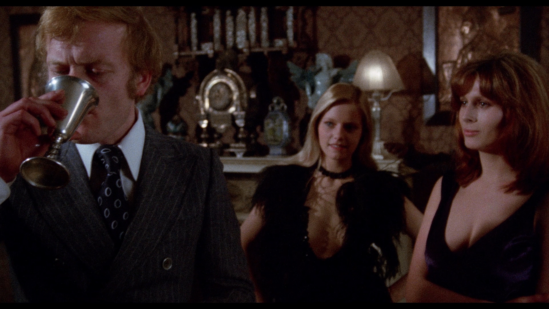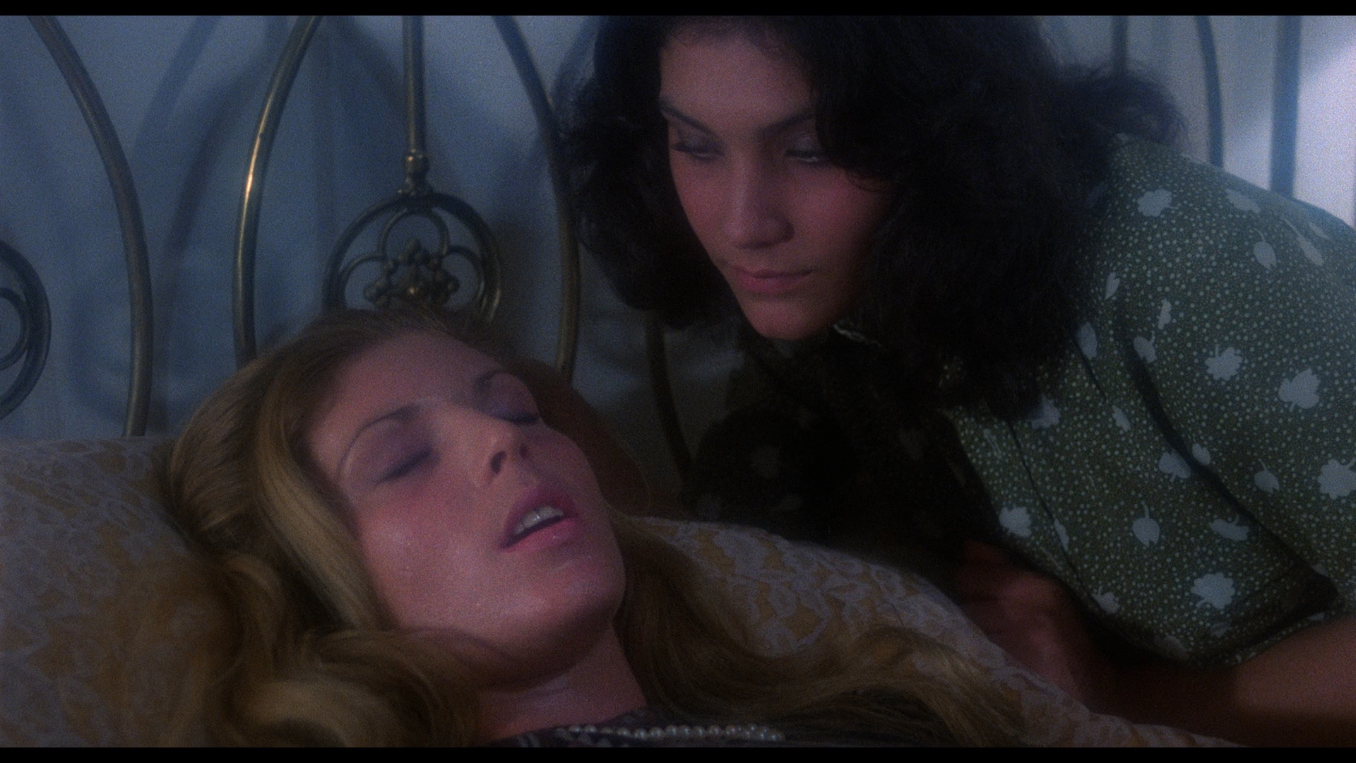 department while carrying over most of the same excellent supplemental features. The lovely, very '70s veneer of grain in the darker scenes is still here, thankfully, with a great deal more detail visible in the delicate daylight landscape shots. The minor digital sharpening from the DVD is also nowhere to be found. The soundtrack options include a DTS-HD 7.1 mix and a Dolby Digital 5.1 mix which only sparingly spread out James Clarke's fuzz-guitar-laden score out to the outer speakers, while the original Dolby Digital mono mix is there to preserve the original, more authentic mix. Don't expect a major difference between any of the three options as the dialogue and sound effects are hardly state of the art. Larraz and Brian Smedley-Aston provide a hilarious, now-legendary commentary track that's bawdy, profane, and wildly unpredictable; while Larraz's career afterwards had its share of bight spots as well (namely Black Candles and The Coming of Sin), he's quite aware of his place in Euro horror history and rattles off some great anecdotes about being a foreign director toiling away in the UK. "The Return of the Vampyres" (13m39s) features Morris and Anulka (both of whom still look fab despite their far more demure outfit choices) talking about their lives before, during, and after the project. Fans will definitely love hearing the stories that brought them to their most memorable roles even if they don't seem to know much about the film itself. Finally you get the English international trailer (which packs in way more nudity than you'd ever see today) and the hilarious, overbaked American trailer ("Very Unnatural Ladies!") that justifiably became a staple of trailer comps for years. The DVD adds some text and still-based exclusive extras, so die-hards may want to hang on to that version to keep the stills gallery, a "lost caravan" scene overview via text and photos (not much of a loss, really, but a nice collectible), a bonus Anulka glamour gallery, and a pdf tribute with additional history and liner notes.