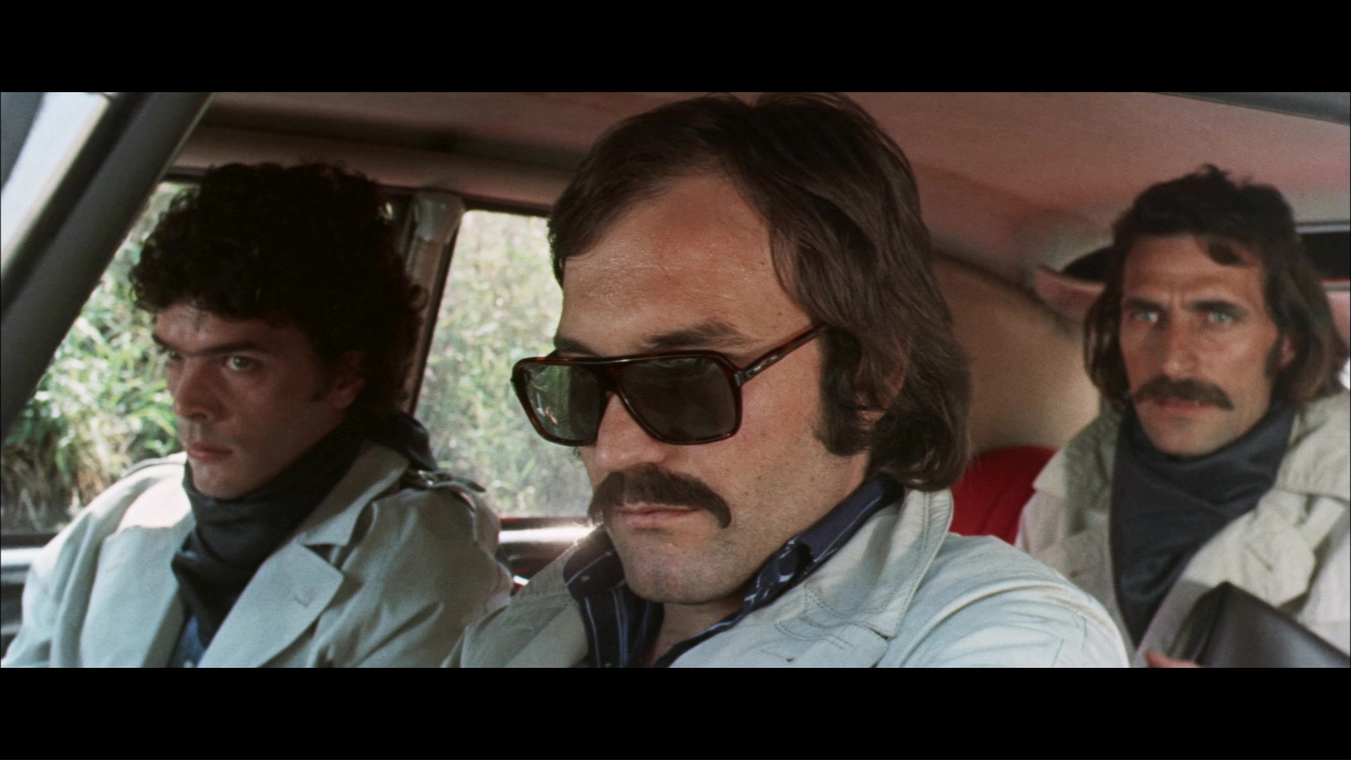 but it went out of print very quickly and started commanding insane amounts of money online. A 2010 release in Italy featured both the English and Italian audio options with a better transfer, plus optional Italian subs. Thankfully the 2018 Blu-ray release from Code Red blows all of those out of the water and marks the first availability of th film in HD anywhere, featuring great colors, fine detail, and no attempts to tweak with the inherent grain structure of the film. The central car chase halfway through has an odd technical anomaly with the footage from one of the cameras apparently suffering a bit of damage to the edges (it comes and goes from shot to shot), so that's a shortcoming of the original film, not the transfer. Both the English and Italian tracks are included (DTS-HD MA mono), and it's a toss up as to which is preferable; some scenes sync up in one language instead of the other, while a handful don't sync up to either version at all. The Italian one sounds classier and a bit more carefully mixed, but the English one is bound to bring a smile to anyone familiar with the voices of dubbed '70s Italian cinema. Optional English subtitles are provided, but they're dubtitles for the English version; in this case they're useless for the Italian version, which has spoken lines in entirely different places throughout (you'll frequently hear incidental lines in one track that aren't in the other at all) and often with wildly diverging meanings. Extras include the U.S. trailer and bonus ones for Almost Human and The Last Hunter.