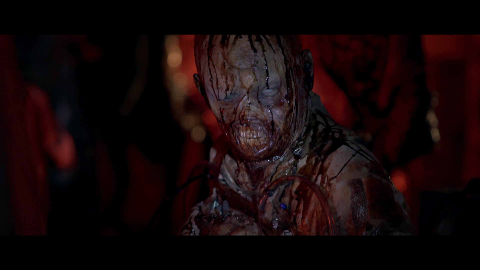 they start off talking about how they meet and some of their other projects (Pacific Rim, The ABCs of Death, the TV shows Hannibal and Defiance) and then segue into several anecdotes about the complex variety of effects involving facial appliances, fake slit throats, rubber monster limbs, and the "exhausting fun" of various creature shop shenanigans. Also exclusive to the Blu-ray is "Nightmare Logic: The Making of The Void" (25m41s), with the primary (and not-so-primary) cast and crew chatting about the very sticky making of the film with a ton of behind-the-scenes footage showing plentiful latex and fake blood flying all over the place. (Keep an eye out for those pet pups during the director interviews, too.) Also included are the film's theatrical teaser and trailer, as well as bonus trailers for Darling and Sugar Mountain. A region-locked UK edition is also available containing the director's commentary, a different configuration of the behind-the-scenes raw material (which is turned into a general making-of, a creature creation featurette, and "The Art of The Void"), and a proof of concept trailer.