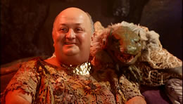 One of the more prominent of these in theaters was The Warrior and the Sorceress, which caught a lot of teenage eyes with its poster design featured a quadruple-breasted vixen writhing beneath a buff, sword-wielding David Carradine. Not surisingly, Carradine is considerably less ripped in the actual film, and the four-boobed starlet is actually a slinky dancer who only appears for one (albeit highly memorable) scene. Our tale here is yet another version of Dashiell Hammet's Red Harvest (which was filmed unofficially as Yojimbo, A Fistful of Dollars, Last Man Standing, etc.) as a lone swordsman, Kain (Carradine), strides into a sandy, desolate town called Yama-Tar in some world mixing the primeval and the postnuke. The local water supply from a well is under control by one of the town bigwigs, and when Kain muscles his way into releasing the water for everyone, the townspeople react by celebrating and naturally allowing three topless women to splash around in it. Soon Kain's services are demanded, first by chubby criminal kingpin Bal Caz (Marin) who consults with a creepy telepathic reptile on his shoulder, and then Zeg (Big Love's Askew), a tyrant whose prize prisoner is the titular sorceress, Naja (Socas), who spends the entire film topless. While pocketing his share of gold coins, Kain plays both sides against each other until a violent finale.