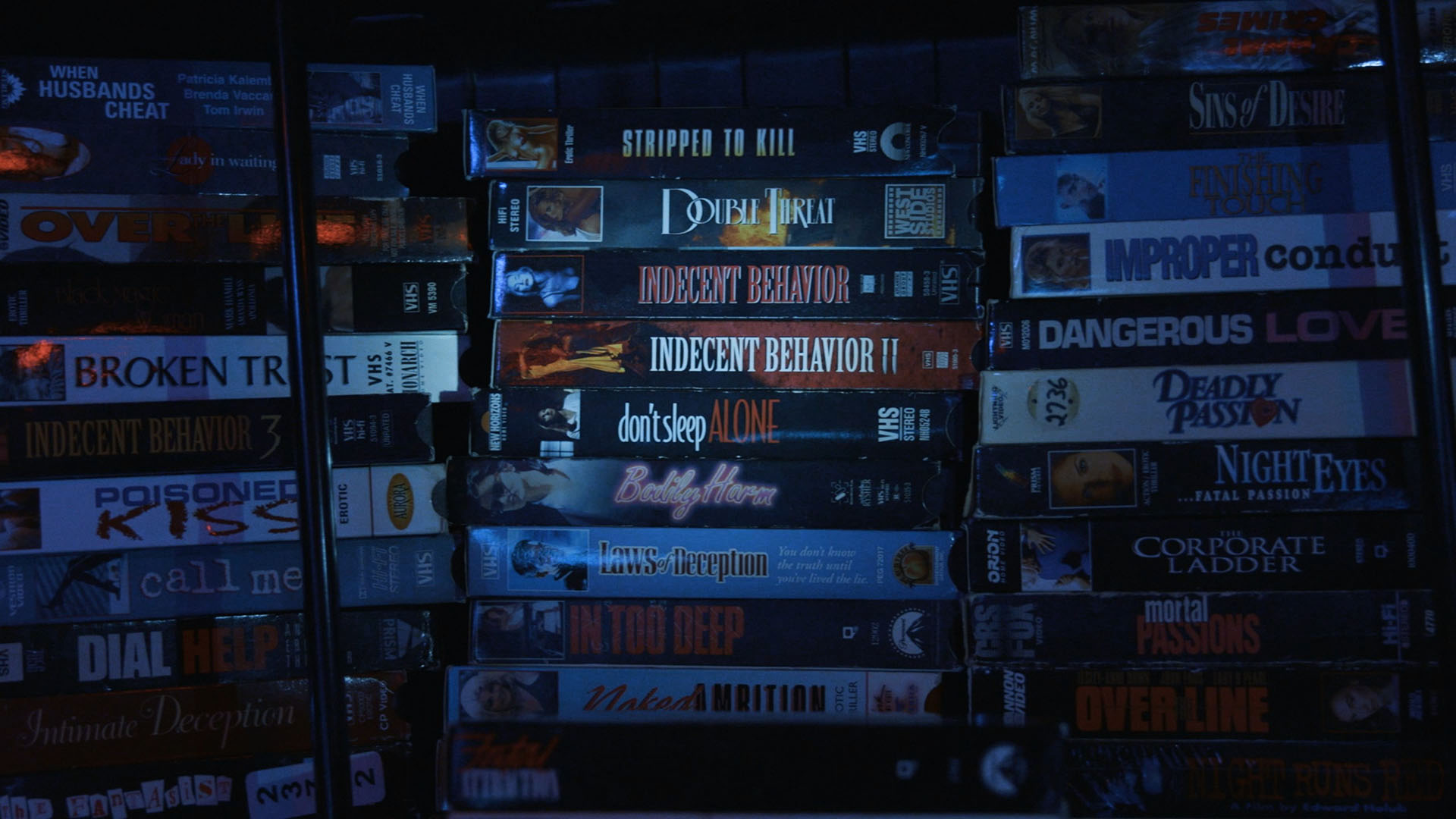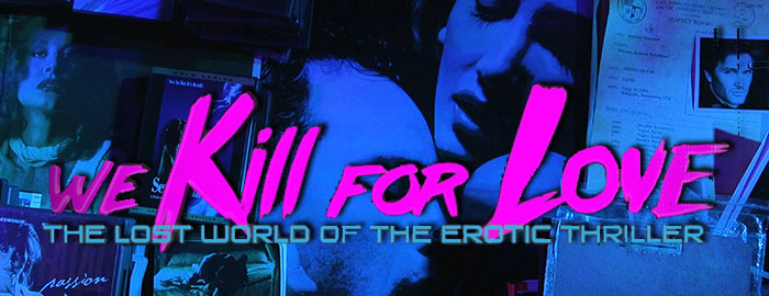 across at least a dozen sexy suspense films staring at you in the new release section. Every year seemed to bring dozens of new, direct-to-VHS films with stars like Shannon Tweed, Andrew Stevens, Tanya Roberts, or tons of other names, with titles like seemed like random combinations of words like "instinct," "indecent," "exposure," "animal," "fatal," and "bedroom." While the cowardly Blockbuster Video only stocked the R-rated versions of most of these films, other stores had the spicier unrated versions guaranteed to feature a few extra minutes of moaning and grinding to ensure you got your money's worth. Exactly how this subgenre of what became known as the erotic thriller got started has been the subject of debate for ages now with various Hollywood hits from the '80s being the most likely cause (more on that below), but what's indisputable is that these were very popular and wildly entertaining staples of any VHS hound's diet before they quietly died out somewhere in the early '00s. The vast majority of these films have somehow slid into oblivion, never seeing the light of day again after their initial VHS (and sometimes laserdisc) releases and long gone from any kind of cable TV play. Furthermore, they haven't really had a chance to build up any following as opposed to the various international strains of horror films, westerns, and even adult titles during the Blu-ray era, with only a few scant written studies devoted to their existence. Aiming to fill that void is the mammoth documentary We Kill for Love: The Lost World of the Erotic Thriller, a combination of "we were there" testimony from the actors and filmmakers of the era mixed with scholarly observations from a variety of film critics pinpointing their appeal and pop culture significance. It's a very welcome salute to these films, which were often lumped in with the more established "Skinemax" strain of softcore entertainment but really had a personality all their own.