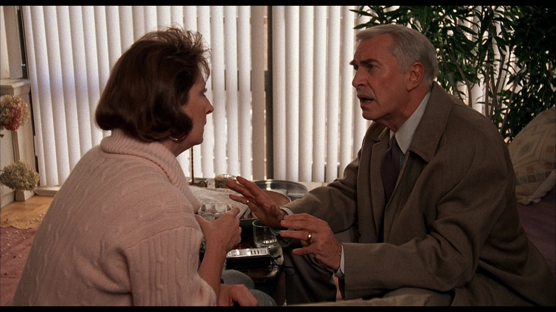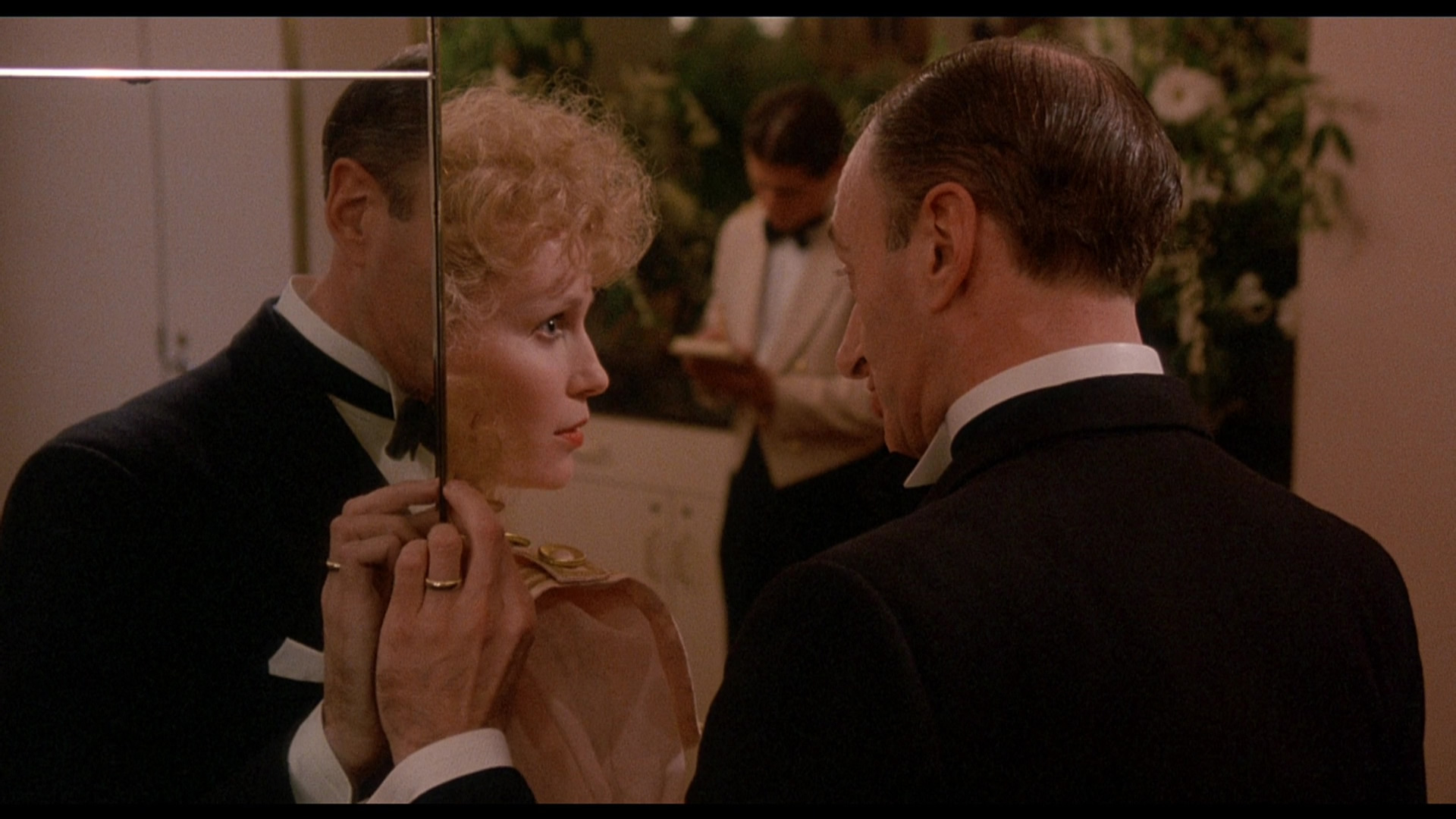 Featuring one of Allen's strongest ensembles, this film justifiably ranks in the top tier of his films (not to mention quite a feat considering it was made just after the classic The Purple Rose of Cairo) with a skillful juggling of multiple storylines that converge quite satisfyingly in the closing moments. In her fifth Allen film, Farrow is mostly relegated to a secondary character here despite the title; instead the juiciest moments go to Wiest and Caine, both of whom waltzed home with Oscars for their work. The film has been steadily available on home video in many incarnations over the years from Orion and MGM VHS editions to an MGM DVD both as a standalone and part of a big Allen boxed set in 2001. The subsequent MGM Blu-ray features only a trailer as an extra (par for the course for Allen, who refuses to allow substantial bonus features on his titles), and it's a pleasing presentation that actually looks stronger than the Orion prints did back in the day. It really offers a fine showcase for the cinematography by Carlo Di Palma, here in his inaugural Allen film (after a couple of Michelangelo Antonioni titles) and something of a visual lucky charm for the filmmaker well into the 1990s. The Arrow release is taken from the same source but looks subtly improved here thanks to a more generous and careful compression job; compare this frame grab from the MGM Blu-ray with the one on the left, and you can see how both textures