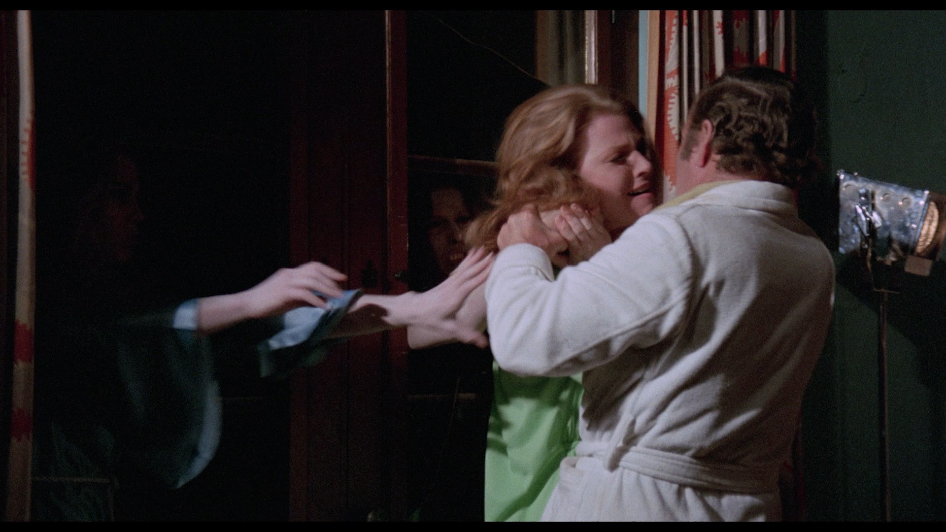 At a costume party on the premises, Yorga strikes up a rapport to Cynthia and irritates her fiance, David (Perry in an entirely different role), but that's just a prelude for a savage attack that night by Yorga's vampire brides. The next morning Cynthia has no conscious recollection of the assault, but in Yorga's clutches she has sudden nightmarish flashes and tries to piece together everything that really happened as the vampire turns out to be completely smitten and hellbent on making her his next bride.