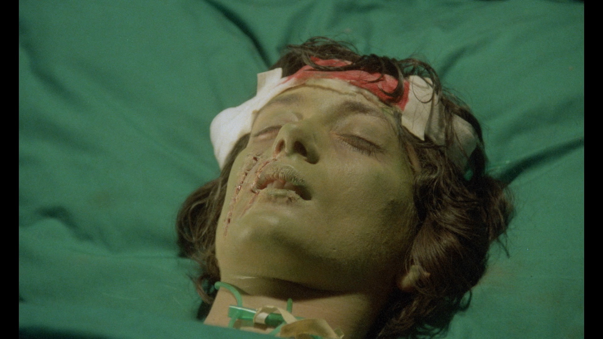 quick flashback) that made it far less than ideal. In 2017, 88 Films bowed the film on Blu-ray in the U.K. featuring a new 2K scan from the original camera negative, featuring LPCM English and Italian mono audio with optional English subtitles (translated from the Italian). Quality is considerably better than any prior edition, to put it mildly, with very nicely resolved film grain and strong detail throughout while retaining the somewhat gritty nature of the film stock we all know and love from that time period. The color timing is quite a bit different though and dispenses with the frequently unearthly, Phenomena-esque shades of blue seen in the lighting on other transfers, veering more to the yellow or greenish side here. Images in the body of this review are from the Severin, with comparisons seen below. The big extra here is "Aenigma: Fulci and the 80s" (76m31s), a collection of intercut interviews about late period Fulci including Claudio Fragasso, Antonio Bido, Michele de Angelis, Massimo Antonello Geleng, and Antonio Tentori sharing various anecdotes about working with the director during the final decade of his life. The English trailer and the Italian opening and closing credits are also included.