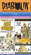 A throwaway film if there ever was one, Mad Movie Makers was produced and released by Bryanston and later released on VHS by Abacus Entertainment as The Last Porno Flick (with a very prominent "Rated PG" on the cover over a scantily clad woman to really send out mixed messages). The film was included as a cheapie entry in BCI/Eclipse's "The Sins of Showbiz" four-film set with Baby Cat, Bottoms Up, and The Swinging Stewardesses, while the Blu-ray sports a new HD scan from... something in the Bryanston vaults; it looks a couple of generations lower than Alice, though still better than the versions we've had out before; the framing and detail levels look satisfactory if you're not expecting demo material. Both films on the Blu-ray sport DTS-HD MA English mono tracks that do about as good a job as possible given the very modest nature of the original sources.
