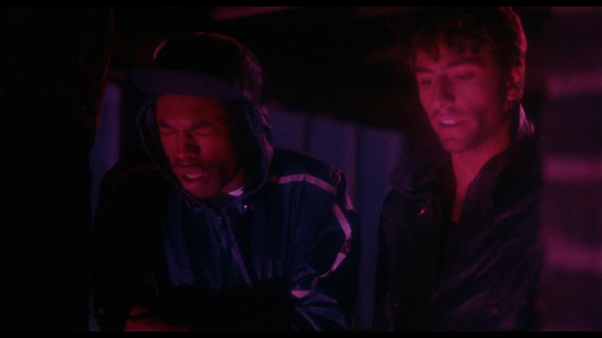 intense hues like red and pink than NTSC could handle. The DTS-HD MA English 2.0 mono track (with optional English yellow SDH subtitles) sounds authentic to the source and makes you wish the budget had been a little higher so they could've sprung for a Dolby Stereo mix. Also in VS form, a lossy Dolby Digital track is included for some reason. Director Amos Poe, who made a splash 1976's The Blank Generation and went on to direct several music videos, was a prominent fixture in NYC's brief No Wave movement at the time (which also included filmmakers like Jim Jarmusch, Richard Kern, and Susan Seidelman), and he's present here for a welcome (albeit extremely low-key) audio commentary with writer Luc Sante about the making of the film including the wrangling of props, the all-night shooting for over three weeks, the early days of car phones, and lots more. They tend to go quiet for long stretches here and there (remember, this is an MGM title), but there's some solid info scattered around throughout. Spano (who also provides a brief optional 33s video intro to the feature) appears for a video interview, "Prince of Alphabet City" (21m59s), in which he chats about getting the role, shooting with a small crew in a very "bad neighborhood" without incident, getting enough "space" from his director to create the character, having a crazy scare in that Trans Am involving the cops and a real gun, and insisting on doing one big fight scene without stunt men. In "East Side Stories" (4m48s), filmmaker Chris O'Neill provides a video essay about the film's pre-gentrification setting and the cinematic influences reworked here for modern sensibilities. Finally the disc closes out with the fun theatrical trailer (which promises a soundtrack release from Island Records that sadly never materialized) and an image gallery (3m26s) of promotional photos.