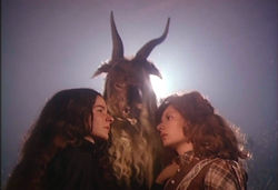 One of the earliest UK releases from Mondo Macabro, Alucarda also serves as the first American title in the line as well. Image quality is excellent for the most part, with the upgraded US disc gaining the edge as it was transferred directly from the original negative and sports only minor scratches and damage. Colors are wonderfully saturated, and while the detail is sometimes almost too sharp (exposing some of the more cost-cutting measures in the otherwise impressive production design, and also exposing some of the inferior stock used for a handful of shots), there's little quibbling to be done with this stellar presentation. The actors performed in English, resulting in an audio track which synchs up with their lip movements even though several voices appear to be looped later. Brook's voice is definitely his own, and it's interesting to see this veteran actor (who also appeared in Moctezuma's fascinating Mansion of Madness and, much later, the 007 actioner Licence to Kill) tackling two very different personae. The stereo audio track limits most of the ambient spearation effects to the low key electronic score, which sounds like a more sparse cousin to Tangerine Dream's soundtracks of the period. For some reason a persistent, bass-filled hum is barely audible throughout the English track; those with a sensitive sound system can minimize this background droning by cranking up the treble. A dubbed Spanish audio track is also included. The US disc contains the lurid theatrical trailer under the original title (though tapes have circulated under such other names as Innocents from Hell, Sisters of Satan, and Mark of the Devil 3), as well as a 15-minute featurette on Moctezuma including tantalizing snippets from his other, earlier work and several useful bits of biographical information, including his relationship with peer Alejandro Jodorowsky. The UK disc instead contains a 22-minute episode on Mexican horror from the excellent Mondo Macabro television series; perhaps for legal clearance reasons this couldn't be ported over directly to the American verison. The package is rounded out with a Moctezuma filmography and text interview as well as a 7-minute video interview with director Guillermo del Toro (The Devil's Backbone), who speaks appreciably of the film and its creator with a number of humorous interjections. He also discusses his working relationship with the late Brook, who appeared in del Toro's Cronos. The final extra is a stills gallery, rounding out an admirable tribute to one of the more outlandish entries in Mexi-horror.
