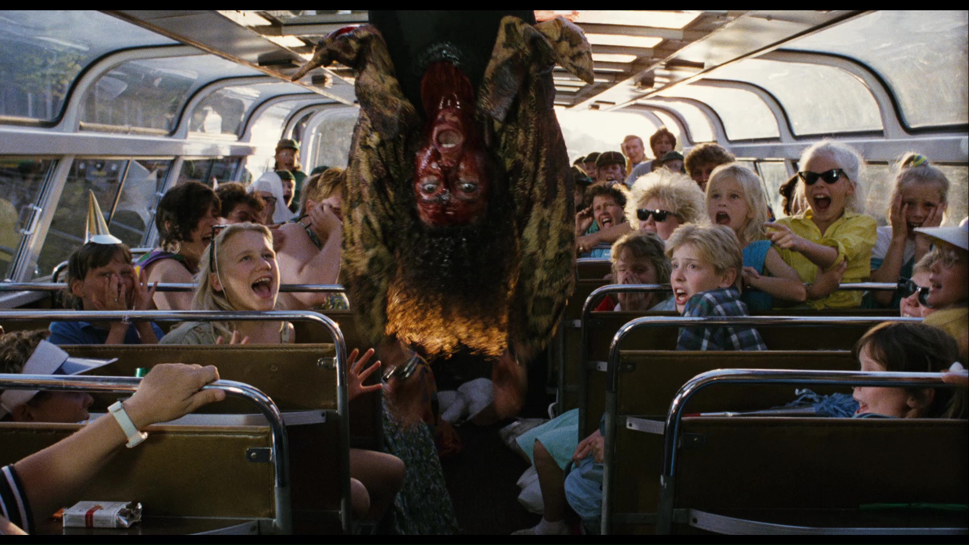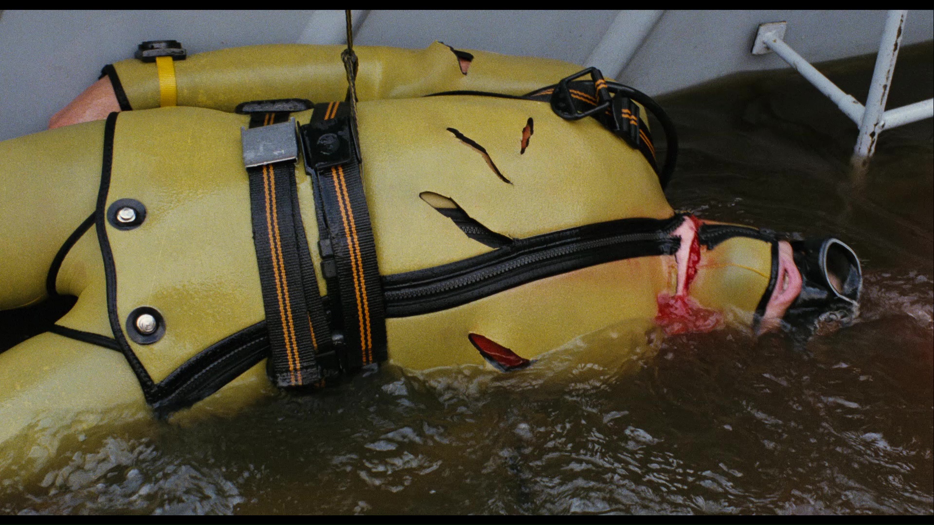 inconsistent results. The best option by a long shot is the 2017 dual-format release from Blue Underground, featuring a 2K scan approved by Maas and a transfer featuring the maximum amount of frame information (far more than most past releases) as well as much richer black levels and natural film grain. Some problem shots that looked blurry or out of focus on other transfers (such as the blonde floating on the raft) are also crisp and clear here. The first pressing featured insufficient encoding for some of the dimmer or darker scenes, which necessitated a revised second pressing with a replacement program for consumers; just email your name, complete mailing address (including country if outside the U.S.), and a copy of sales receipt showing purchase of the disc to AmsterdamnedBDReplacement@yahoo.com. As with the replacement disc for The Stendhal Syndrome, it's a notch brighter and looks better resolved with low-light grain faring better and looking less coarse. Audio options include the original Dutch track in DTS-HD MA 5.1 (which sounds great) or 2.0 (the original Dolby Stereo mix), the English dub (DTS-HD 2.0 Dolby Stereo mix), or French (Dolby Digital), with subtitle options including English (translated from the Dutch track), English SDH (for the dub), or Spanish.