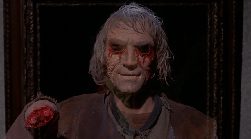 foray into feature-length horror from Amicus Productions, And Now the Screaming Starts! was released the same year as their final anthology horror films, Vault of Horror and From Beyond the Grave. However, the omnibus influence definitely shows here as the saga of an ill-fated married couple's horrific homecoming is splintered into a variety of subplots, flashbacks, and Brit-horror guest spots, all quite enjoyable even if it doesn't all necessarily click together in the end. In the late 1700s, Charles Fengriffin (Ogilvy) brings his new bride, Catherine (Beacham), home to his family estate where she immediately gets the shivers when looking at a painting of his brooding ancestor, Sir Henry (Lom). Meanwhile a disembodied, bloodstained hand skulks around the stairways, and during the night Catherine is molested by an eyeless, grinning apparition. No one believes her, of course, even when the domestics are also terrorized by various supernatural manifestations. Catherine's increasingly erratic behavior forces her husband to call on Dr. Whitte (Magee) and ultimately Dr. Pope (Cushing) to unravel the mystery, which is rooted in a barbaric act of upper-class sadism that still taints the Fengriffin name to this day.