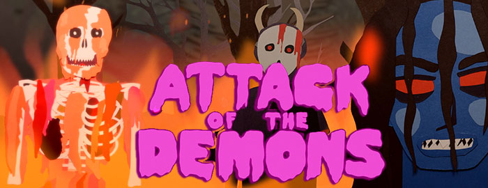with occasional surprises popping up like Happy Tree Friends, the finale of Todd and the Book of Pure Evil, occasional episodes of South Park, or The Spine of Night. To that list you can add Attack of the Demons, which uses a rudimentary animation style to deliver a hefty amount of monsters and viscera over the course of its short running time. Directed by Eric Power (Path of Blood), it's also an amusing period piece set in 1994 complete with nods to the pivotal moments in indie rock, horror fan culture (especially John Carpenter, Sam Raimi, and Stuart Gordon), and video games happening at the time, all set to a catchy synthwave soundtrack.