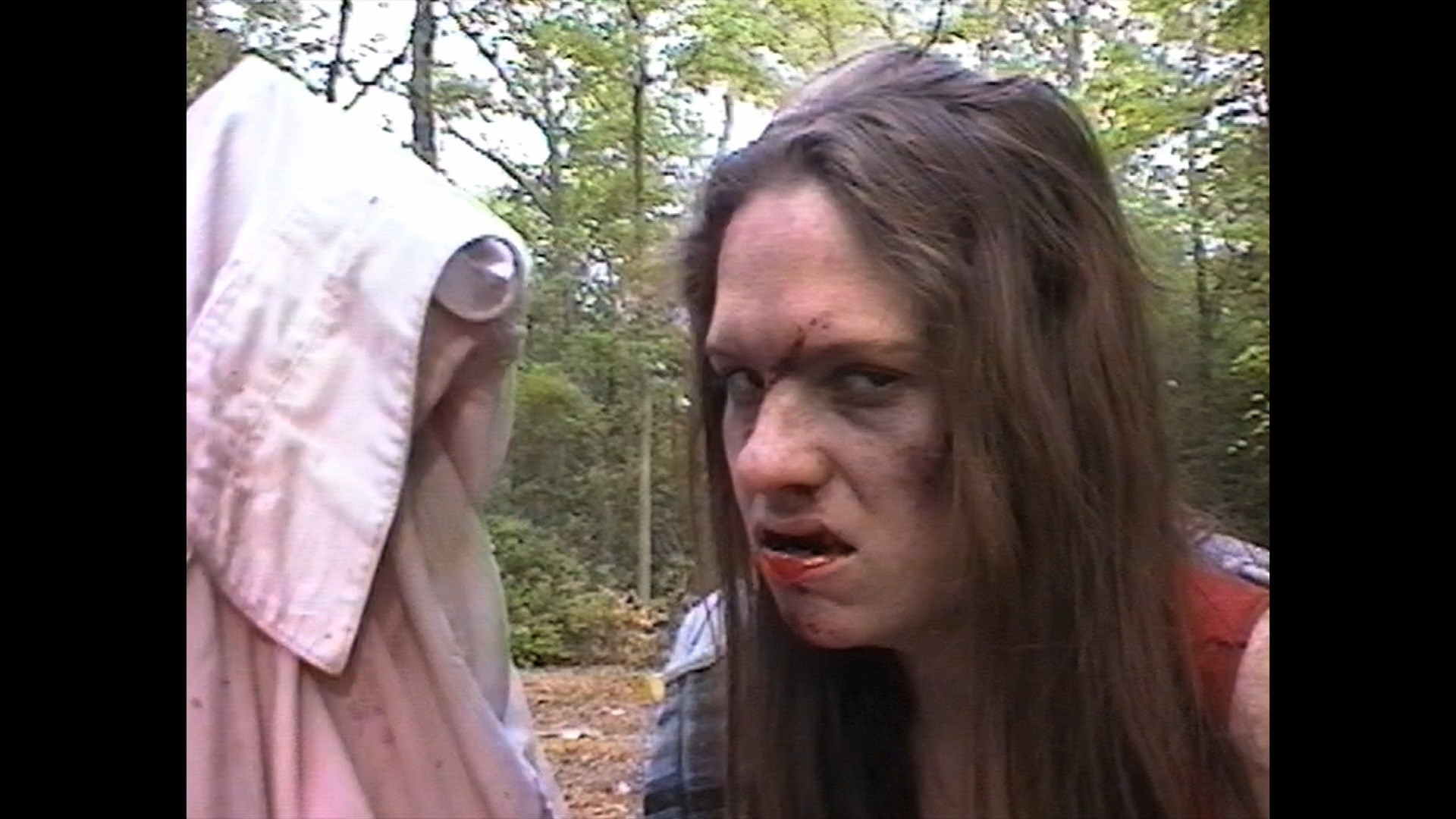 creation of a new 10-minute twist ending with W.A.V.E. cohort Pamela Sutch (complete with one of the greatest lines of dialogue in movie history) to get the film up to feature length, and the high number of W.A.V.E. women who directed their own micro-budget films. Also included is the original archival analog VHS cut of the film (72m40s) which features a different, clunkier opening and some other variations throughout including some alternate takes. It's a very lo-fi experience to put it mildly but nice to have for posterity. "Behind the Backwoods" (12m5s) features Murphy and Castiglione providing very lighthearted commentary over a reel of production footage, including a funny (fogged-out) wardrobe malfunction and some other random bits of business. Also included are the original trailer and bonus ones for Love Is a Stranger Again, Deep Undead, Mail Order Murder: The Story of W.A.V.E. Productions, Psycho Sisters, Duck! The Carbine High Massacre, Sinistre, Red Spirit Lake, We Await, and Shatter Dead.