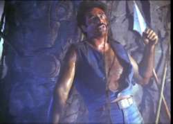 Packed with thunder, lightning, cobwebs, vultures, pounding synth music, and ooga booga beasties, Takhkhana is a solid, representative example of Ramsay horror with an original if somewhat convoluted story and the usual creepy-crawly atmospherics. Though you get plenty of shots of the monster's red eyes and scowling face, most of the real mayhem is packed together in the brisk final half hour which finally lets the demon loose with a host of amusing death scenes, most memorably a pickaxe