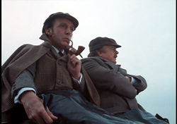 Considerably less dignified is the 1978 film of the same name, directed by Andy Warhol disciple Paul Morrissey (Flesh for Frankenstein) and starring famed comedy team Peter Cook and Dudley Moore (Bedazzled) as Holmes and Watson. Featuring a multitude of half-witted movie parodies (including The Exorcist) and a scattershot collection of gags, the film never gels as a whole but features an odd moment here and there to provoke a smile. At least the supporting cast offers some much-needed focus every time the film threatens to wander off, including Denholm Elliott as Stapleton, the wonderful Joan Greenwood, Terry-Thomas (in his final role) as Dr. Mortimer, AIP regular Hugh Griffith (the Dr. Phibes films), Roy Kinnear (in drag), Spike Milligan, and Fawlty Towers' Prunella Scales, among others. For Holmes-friendly viewers, however, this may not be much comfort as the familiar tale gets dragged through the wringer.