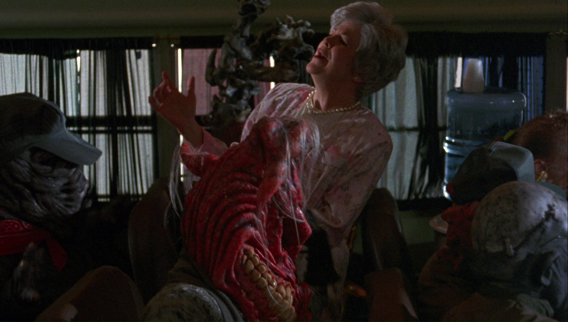 only a tiny smattering of blood but compensates with a nonstop parade of latex grotesqueries. The death scenes here (apart from a couple of fleeting exceptions) are played so blatantly for laughs that no one could possibly be offended, and the gambit paid off; this not only earned an R rating (opening Belial sex scene notwithstanding) but became the only Henenlotter film to earn a DVD release in America from a major studio (Fox, somehow, following a VHS release from Universal!). It's nice to see the appealing Van Hentenryck and Ross together again after part two (along with returning composer Joe Renzetti), and while the production was reportedly a troubled one, it hangs together well enough to send the series out on an appropriately boisterous (albeit now very dated) note. Also worthwhile is the inversion of formula here with Belial here essentially becoming the hero (including that daffy climax, a scene not easily forgotten), with Duane now the shunned outcast.