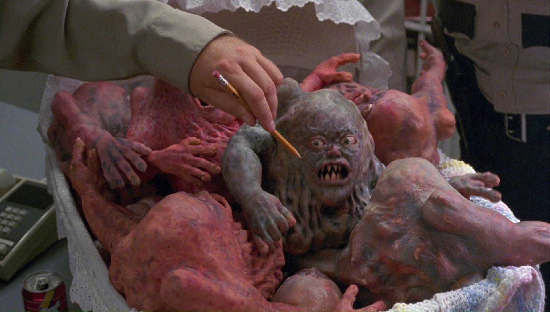 The completely ludicrous MPAA battle surrounding director Frank Henenlotter's Frankenhooker (which came in between this and the previous Basket Case film) must have had something of a chilling effect on Basket Case 3, which features