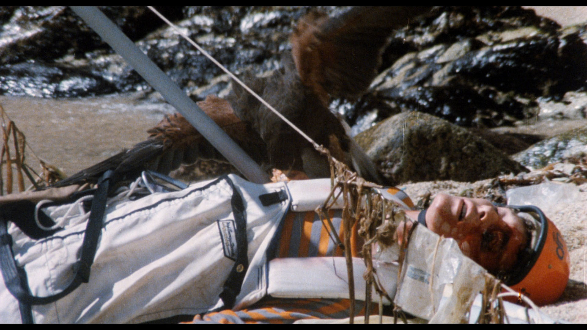 pleased when she gets assigned to a farmer attacked by his chickens. (Confusingly, the action keeps hopping back and forth between Spain, South America, and Italy so much you'll be completely lost where everything is happening by the 30-minute mark.) Vanessa's story leads to the horrifying story of a small town decimated by birds thirty years ago, which might be linked to a Peruvian animal spirit or something. While stock music from Stelvio Cipriani's Tentacles (and some of his other films) gurgles on the soundtrack, we follow Vanessa and Peter on their investigation including an interview session in Rome with Black Emanuelle mascot Gabriele Tinti and Contraband's Cinza Lodetti (credited here as "Carol Connery"). Of course, it's just a matter of time before birds are amassing around the globe and staging a massive attack that will leave our journalistic heroes fighting for their lives against rampaging pigeons.