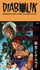 star and sometimes writer-director Paul Naschy had firmly established his most famous character without setting up much continuity between entries. Exactly where this one falls in the cycle depends on how you're counting the films (it could be anywhere from the ninth to the eleventh), but it definitely marked a huge change of pace after the purely Spanish Night of the Werewolf, better known to U.S. theatergoers as The Craving. With financing drying up into the 1980s, Naschy found an unexpected source of funding Japan starting with 1980's grim Human Beasts. With The Beast and the Magic Sword, Naschy relocated his most famous monster to Japan and got to indulge in some of the most lavish costumes and sets of his career, not to mention a stable of fresh new acting talent thanks to the Japanese thespians at his disposal. However, the film was only shown theatrically in Spain and became a peculiar footnote in Naschy's career mentioned far more often than actually seen. An English dub was never commissioned, and until the 2020 Blu-ray release from Mondo Macabro, it was never even officially subtitled for English-speaking viewers.