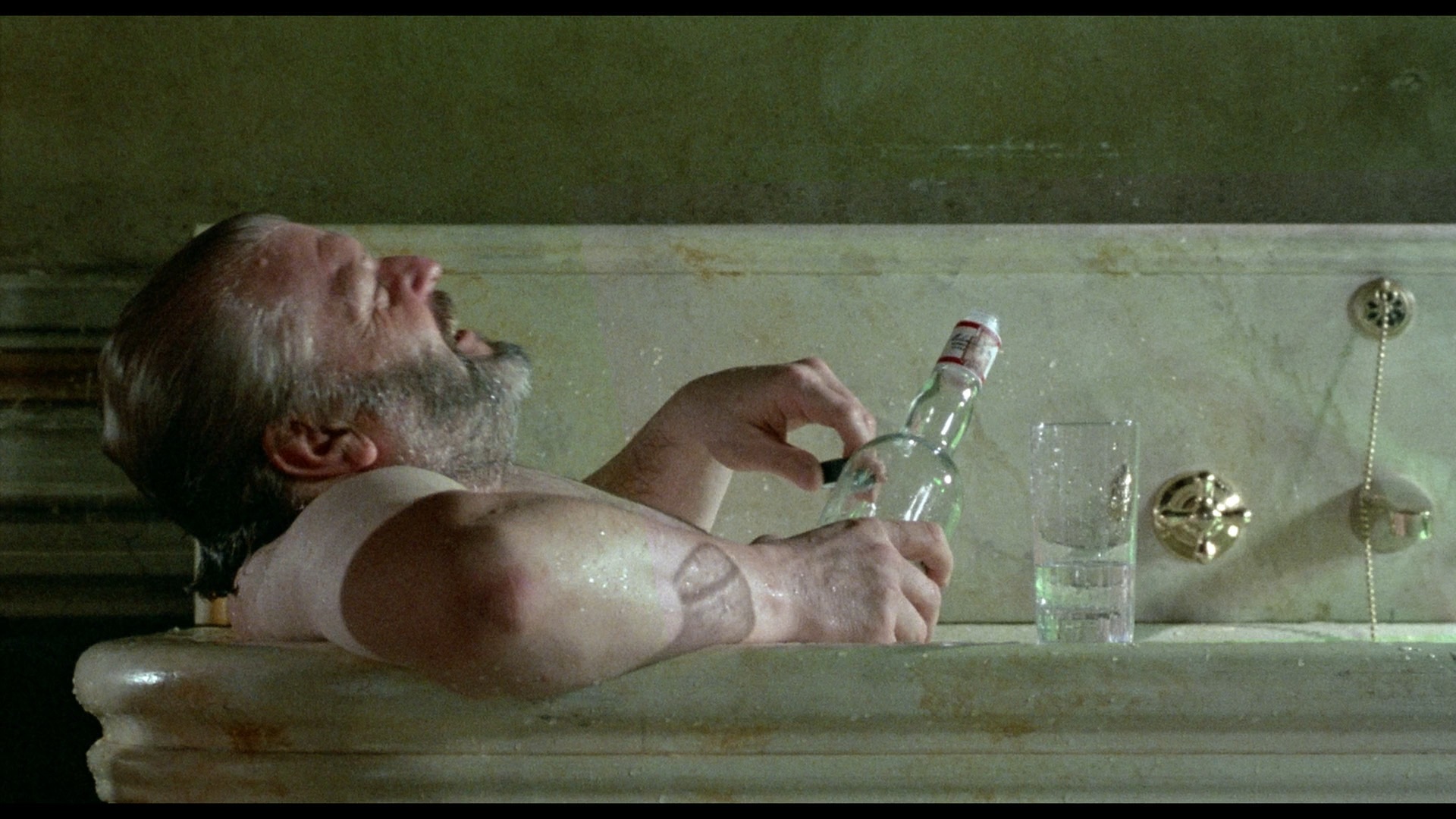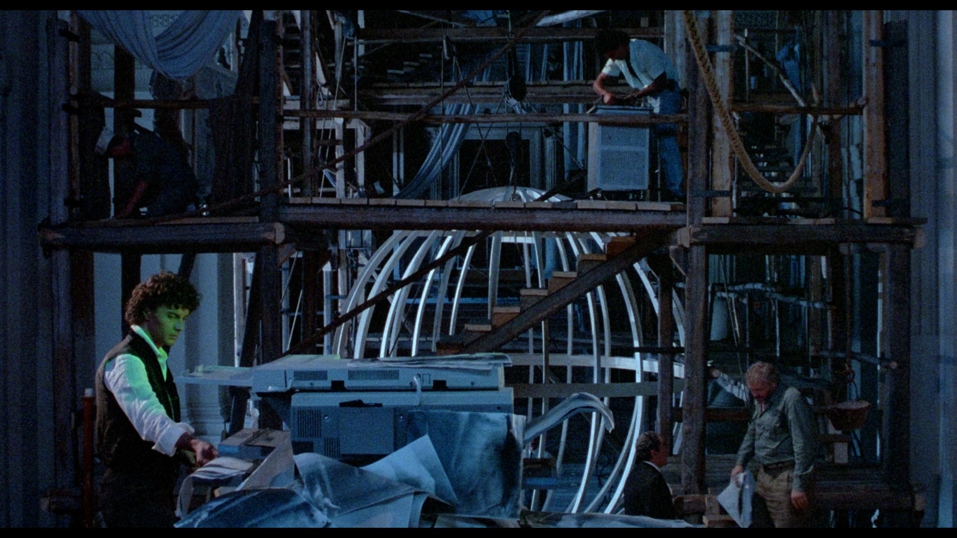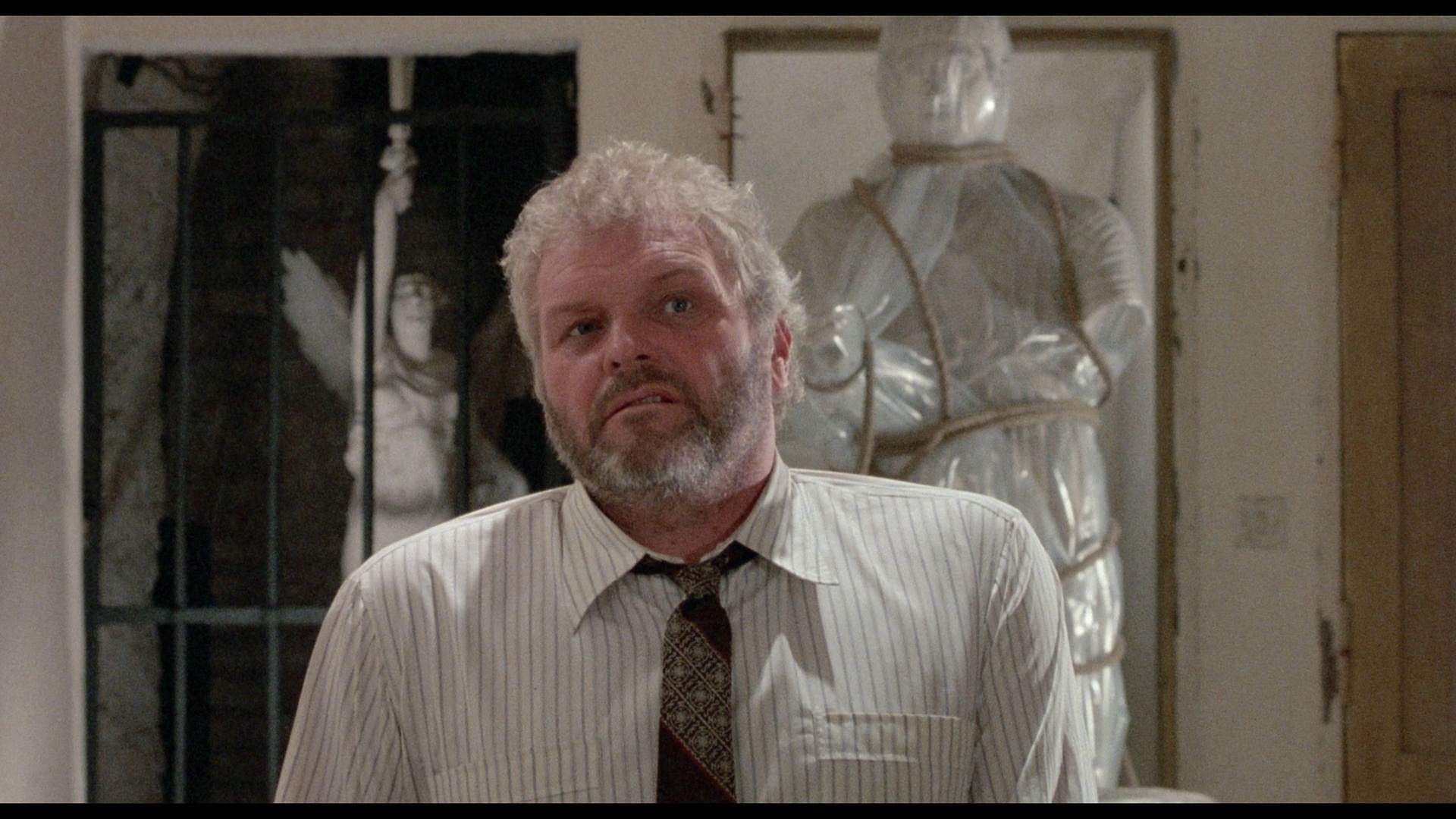2K scan and restoration from the original 35mm camera negative. The prior HD presentation was already excellent so the difference here isn't tremendous, but the grain is managed better here and looks more natural while reds are more controlled and don't glow in a few spots like they do on the BFI (see fifth comparison grab below). The DTS-HD MA 2.0 English stereo track sounds as good as it always has with fine separation, and optional English SDH subtitles are provided. A new commentary track with Eugenio Ercolani and Greenaway obsessionist Tony Strauss covers everything you could possibly want to know about the production including Greenaway's reasons for distancing himself from it in later years, the numerous ties to his other films, the Italian production crew involved, the themes of architecture and the body, the merits of the score, and tons more. In "Stately Progress" (18m3s), still-busy editor John Wilson chats about his career path that led to the COI at the same time with Greenaway, the move to features with Draughtsman, working out the themes to this film upon seeing the footage which he couldn't see until it was all finished, the role of fine arts and especially drawing in this film and their others, and his overall working process with Greenaway which continued through Cook. "Caput Mundi" (28m31s) is an intriguing interview with architect Gianpaolo Ercolani (and some photogenic cats) about Greenaway's evolving relationship with Rome and its surroundings, his own introduction to Greenaway via Draughtsman, the boldness of casting Dennehy, the conceptual trademarks of Étienne-Louis Boullée's architecture, the heavy number of pick-up close shots done later in England, the doctrines behind the discipline, and the role of signature buildings here like the Pantheon. An insert booklet features an essay by Scout Tafoya, "The Cenotaph and Cake," placing this film in context with Greenaway's oft-stated theories about cinema and the ways one of its central architectural images reflects on the larger purpose of the story.