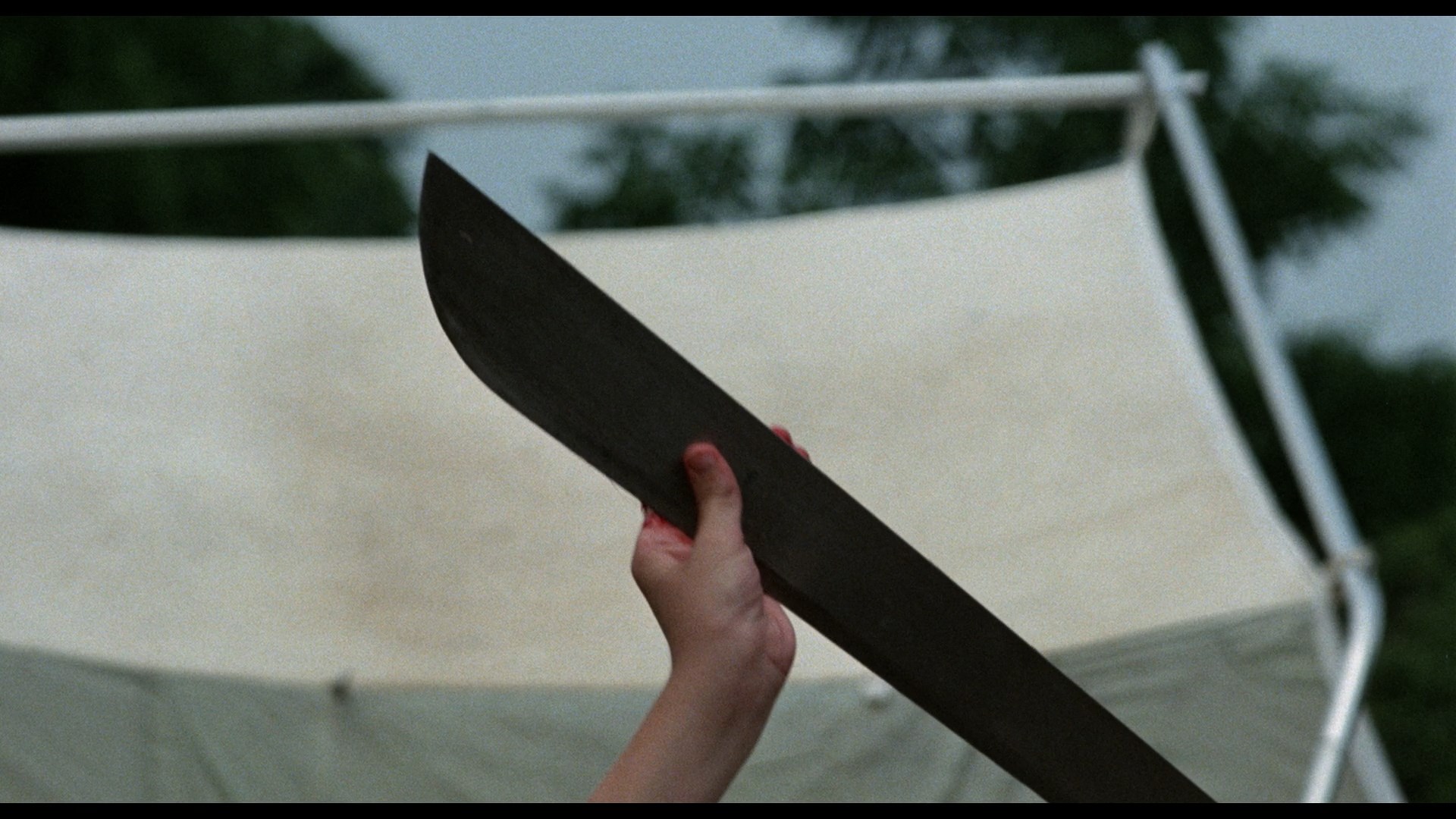 testy writer John DeWolfe (Robertson) meets up with his brother-in-law, Ross (Hamilton), a sheriff whose daughter has gone missing. Since we see a particularly salty Bible pusher get whacked in half with a scythe as soon as John pulls in, it's clear that the cannibal kid plague is spreading rapidly with the incredibly inept parents either unable or unwilling to do much about it. As the body count piles up, it's clear this will only end in tears -- and a lot of blood.
