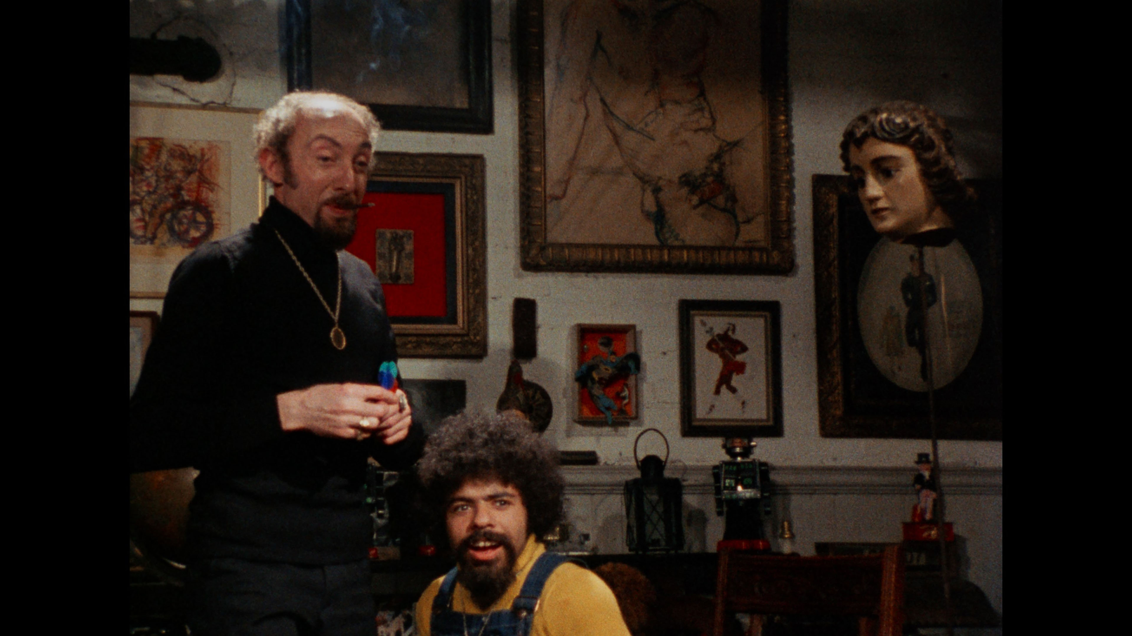 Significantly beefier is the American Blu-ray from Troma (with a DVD included in the same package), which features the same image quality but tosses in one heck of an added bonus. They uncovered elements of a longer version under the title Sardu, Master of the Screaming Virgins, with that title sequence now in place, and you can either play the standard theatrical cut or the new extended edition. The difference amounts to about 40 seconds in all, with the recovered footage looking significantly paler in comparison -- but it's a doozy. Let's just say you should pay attention at the 16-minute mark for an eye-opening twist on the relationship between Ralphus and Sardu. The audio here is Dolby Digital versus the LPCM mono of the British one. Kaufman provides a new HD intro to the film, pretty much reiterating what he said in the old DVD release but with extra comments about the recovered footage. The original commentary and interviews with Roth are included, and he's still quite a fan since he also pops up in a new video interview. Running 20 minutes, it's definitely one of his best on-camera testimonial pieces as he talks about tracking down the cast members as a young fan and discusses the sad fate of O'Brien, who was supposedly murdered by a potential "rough trade" partner. No one to this day seems to know what happened to De Jesus, who also enjoyed a career as a porn actor and supposedly surprised Reed with an impromptu orgy at the end of the shoot. The self-promotion runs a bit high at the end as he plugs The Green Inferno and The Crypt, but otherwise it's a great dissection of the film's merits and a good case for its importance in the extreme cinema canon. Also new is a 14-minute interview with WWE star Chris Jericho, who became a huge fan of the film and introduced the character of Ralphus into his routine. The '81 reissue trailer from Troma is here of course, as are the usual unrelated Tromatic extras closing out the disc including the Radiation March, Tromaloha, Sell Your Own Damn Spider, and trailers for Return to Nuke 'Em High, The Toxic Avenger, Poultrygeist, and The