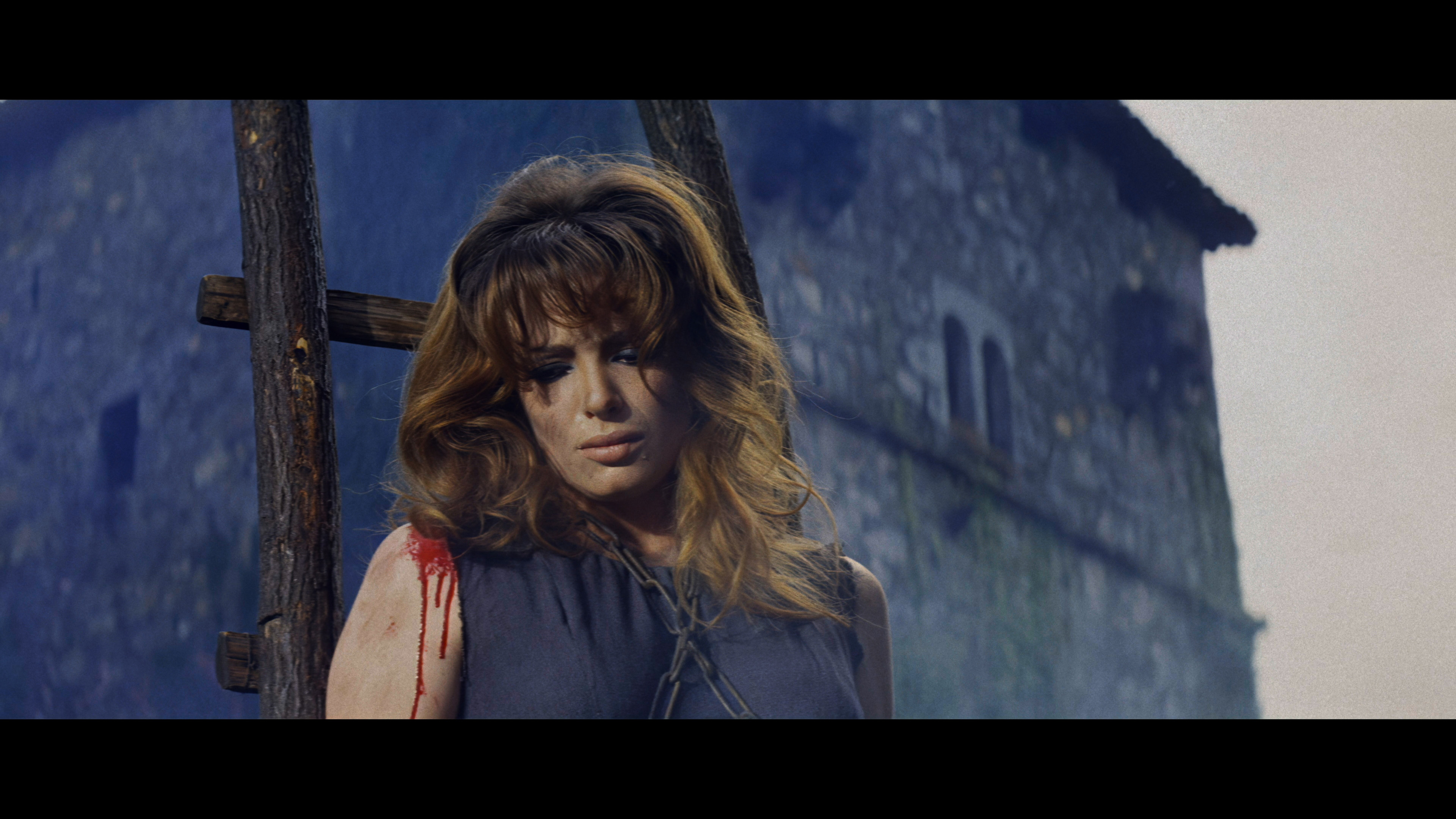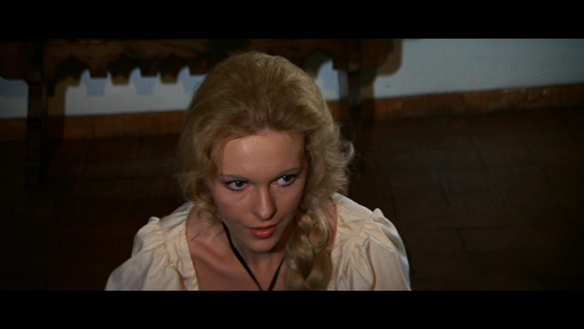 The first DVD out of the gate from Redemption sublabel Salvation in the U.K. in 2000 was notable for containing one fairly strong, bloody sequence with Alicia’s barely covered body being tortured on the rack by Franco stalwart Howard Vernon (in a very funny costume), but otherwise there was precious little violence or sex in this so-so, non-anamorphic letterboxed release clocking in at 89 minutes. The German edition, The Witchhunter of Blackmoor (Der Hexentöter von Blackmoor), featured many additional topless and torture scenes (primarily with Ms. Rohm), and this footage was incorporated into the English version for Blue Underground’s much