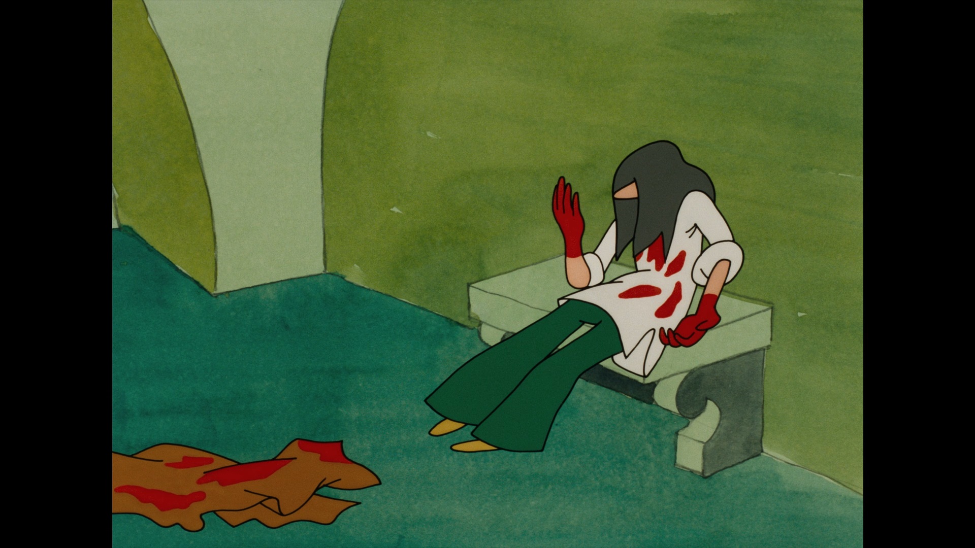 and music, with plenty of films along the way including Countess Dracula, Immoral Tales, and Daughters of Darkness. Her exploits involving the supposed slaughter of hundreds of young women as a source of blood to keep her eternally young have linked her with vampirism in the public consciousness, though the validity of these tales has often been called into question as well as their influence of Bram Stoker's Dracula. In any case, there's no other interpretation out there quite like 1980's The Bloody Lady (Krvavá pani), one of two feature-length works by Slovak animator Viktor Kubal who churned out well over a hundred short films over the course of his decades-long career. His trademark style involving very simple lines, shapes, and colors was first put to use in commercials and child-friendly short subjects, but here he lends it to something much stranger and darker that feels like a Saturday morning cartoon splashed with nudity and blood.