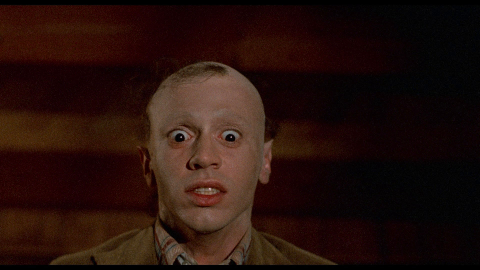 Both also port over all the extras from the Filmcentrix release on the Blu-ray options (commentary, featurettes, archival Q&As, etc.) and let the film itself fill out the UHD with only the commentary, while adding the alternate trailer and The Ringer with optional Lieberman commentary to the Blu-ray. The Camera Obscura also has a 35-image gallery of posters and stills accompanied by soundtrack music, plus a booklet with an essay by Dr. Marcus Stiglegger; audio options include PCM 2.0 mono for the differently pitched German theatrical and home video mixes and the English mono mix, plus a DTS-HD MA 5.1 English track with optional German or English subtitles (plus optional German subs on the extras). On the other hand, the French release has optional French subtitles and, rather t3han a DVD, tosses in a bonus Blu-ray featuring a no-frills presentation of Lieberman's 1988 VHS cult film Remote Control with Kevin Dillon and Jennifer Tilly (under the title Meurtes en VHS), though you can also purchase it separately on Blu-ray or DVD from Lieberman himself.Of course, it was just a matter of time before Synapse upgraded the film. In 2024 they issued a three-disc limited edition (UHD, Blu-ray and soundtrack CD), followed in 2026 by separate retail UHD and Blu-ray options. As you would expect it's the best-authored option of the bunch, featuring exceptional detail and a nice color gamut for the HDR10-compatible Dolby Vision grade on the UHD. The framing is identical as the prior Blu-ray and UHD options with similar but not identical color, with more convincing ones on display on a few scenes (like the fourth frame grab comparison below). The DTS-HD MA 2.0 mono and 5.1 surround English mixes both sound excellent, with optional English SDH subtitles provided. This time you get both of the Lieberman commentaries (with Berger and Drenner) together in one place, plus the 2003 interview with Lieberman, the Channel Z interview with Lieberman and Garris, and the "Lieberman on Lieberman" piece, plus a funny Fantasia Film Festival screening Q&A (36m29s) with Michael Gingold, two trailers, The Ringer, the bonus LSD short scare films LSD-25 (26m41s) from 1967 and LSD: Insight or Insanity? (18m3s) from 1968 with lots of inappropriate stock music and groovy narration, and a 5m37s image gallery. The film itself can also be played with a new 1m29s Lieberman intro about the film's real-life inspiration while he goofs with a Rodin-esque sculpture.