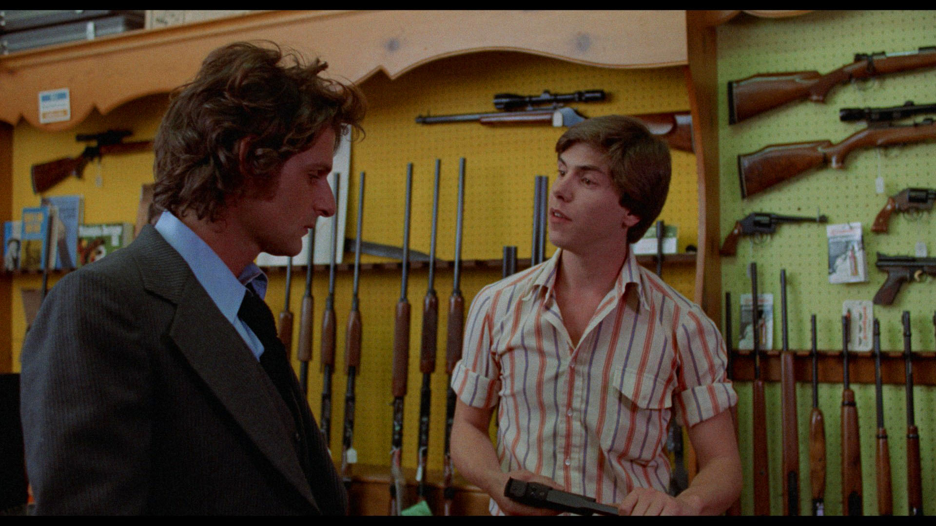 Sandy King (who went on to produce several John Carpenter films) recalls her time on the production paying attention to everything from props to costume continuity while mingling with non-union "packs" at the time. Then the actors get their say in "Paging Dr. Blume" (9m57s) with Walden and "The Lunar Crooner" (7m1s) with Crystal sharing their stories from working with the self-confident Lieberman, their backgrounds that led them to auditioning for the film, the approaches to their characters, and connections that helped them out along the way. An archival appearance from the Fantasy Film Festival (12m8s) aired on the Z Channel back in the '80s features Mick Garris interviewing Lieberman about this film, the making of Squirm, and his affinity for comedy. A "Q&A at the Jumpcut Cafe" (15m20s) is a much more recent Lieberman appearance as he goes into the genesis for the film, his sci-film film influences, and his thoughts on the final product decades later. "The Locations of Blue Sunshine" (8m43s) has Lieberman cruising in a van with Drenner through the L.A. locations and riffing on his family background in Brooklyn. Finally you get a bath of scratchy LSD classroom scare films (20m41s), exactly the kind of cautionary but psychedelic tomes Lieberman was responding to with his film.In 2021, Blue Sunshine made its UHD premiere with two nearly simultaneous European releases also containing a Blu-ray. The German edition from Camera Obscura was the more elaborate option compared to the French one from Le Chat Qui Fume; both were taken from a fresh 4K restoration, and it looks fantastic either way with deep, rich colors and pin-sharp detail throughout with no damage in sight. While the Blu-ray looks about the same as the U.S. one in terms of color timing and framing given they're from the same film source, the fresh remaster makes a difference with the UHD in particular (which has HDR10, though the French