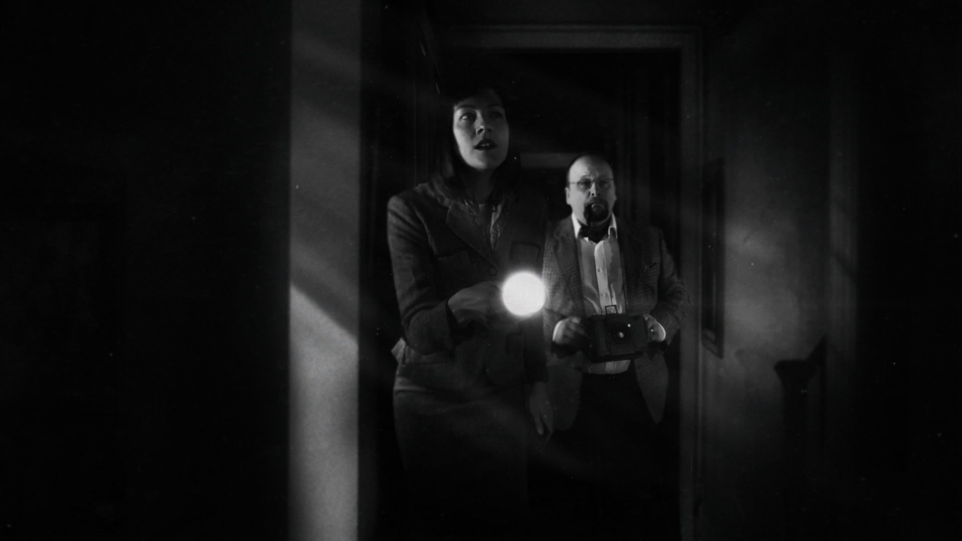 Screams" (32m14s) is a 2017 screening Q&A with Thorpe and actor Nicholas Vince offering a slightly condensed and reworking appraisal of the film. (Festival screening note: not a great idea to do a Q&A while the film itself is still wrapping up behind you!) In "At the Mercy of Ghosts" (27m52s), British screenwriter Stephen Volk (Ghostwatch, The Awakening) sits down with Thorpe for a conversation about English ghost stories and the themes of grief and irrationality that run through the storied tradition. In "History of Borley Rectory" (60m4s), you get a thorough scholarly account of Price and the building via authors Stewart Evans, Eddie Brazil and Paul Adams, who go in depth about the ghostly figures like the nun and offer hypotheses about the background behind them. A visit to the British Library's horror expedition (16m48s) is a very enjoyable, casual hangout with Shearsmith and Rigby (and Thorpe, briefly) looking at film and historical gems while chatting about their own fascinations with the macabre. Then a Grimmfest interview (11m7s) with Thorpe, Rigby, Amias, and Atkinson covering the making of the film in front of a step and repeat, while "Anatomy of a Scene: Animating Borley Rectory (10m19s) brings in Double Farley Creative's Kevin Double to demonstrate how existing photos and plans were used to make a virtual 3-D replica of the long-vanished architecture. In "Conjuring the Spirits" (11m14s), furniture restorationist and artist Robert Thorpe is seen at work on the Borley Ouija board, an idea that came late in the process and features some nice attention to detail including some familiar elements from the film. In "Harry Price and the Martian Lighthouse" (4m55s), Thorpe presents a thumbnail sketch of one of Price's fascination with Mars and astral waves, including his attempts to communicate with Martians via lenses developed with the aid of a lighthouse and the Chance Brothers glassblowing company. Finally the disc closes out with a gallery (6m45s) of the production from Sands' recording session through the extensive greenscreen work, two teasers, a trailer, and the three Thorpe shorts touched on elsewhere in the extras: "Scayrecrow" (12m25s), "The Hairy Hands" (13m23s), and "Screaming Skull (10m12s).