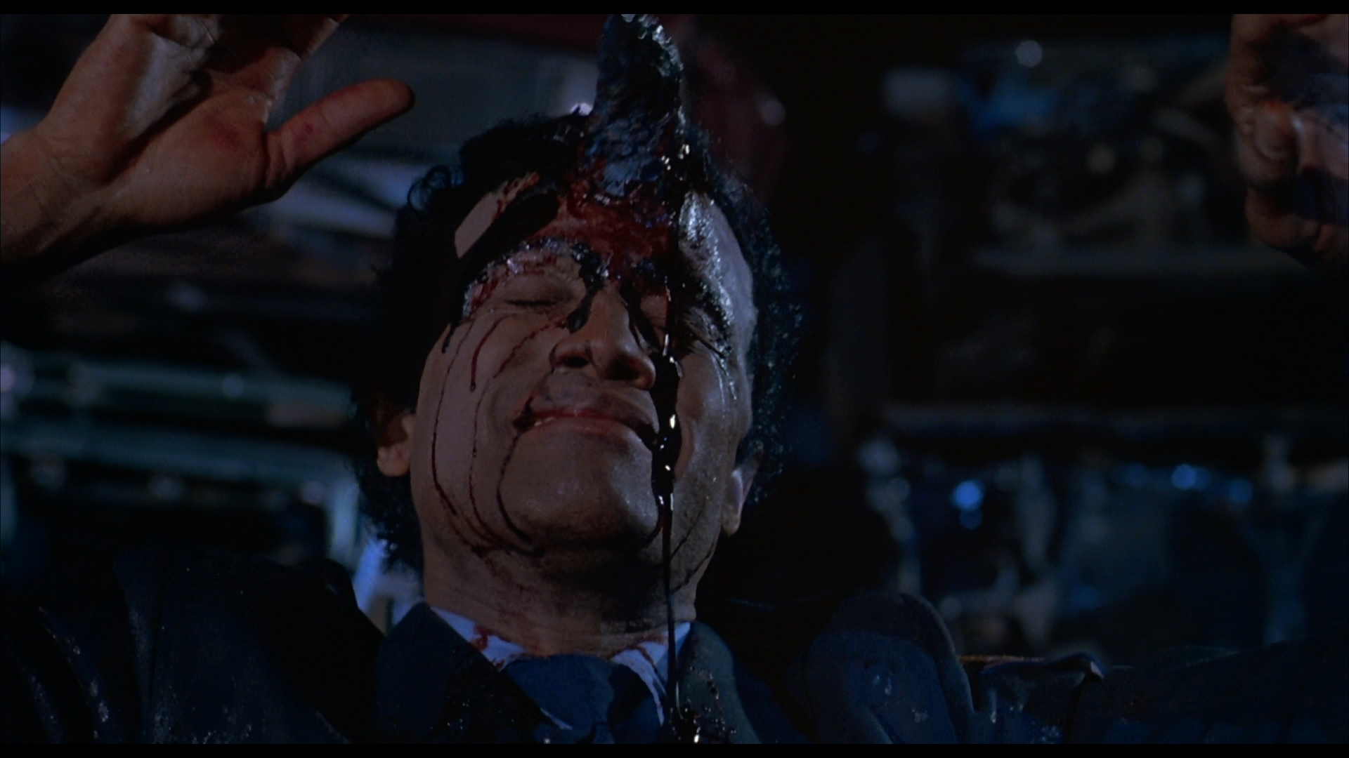In 2017, Arrow finally brought the film to Blu-ray and DVD as a dual-format release in both the U.S. and U.K. that represents the film's strongest visual presentation to date. The intense blue and rose hues really pop here and the natural cinematic texture of the film appears to have been left intact, which means the inky blacks and gritty appearance of the night scenes still look wonderfully grimy. Audio is presented in either a bouncy 5.1 DTS-HD MA or LPCM English option (both sound great), with an LPCM option also present for an isolated score track. Optional English subtitles are included along with a brand new solo commentary from Henenlotter (with moderator Mike Hunchback), who's hilarious as always as he repurposes some of the past material and gives it a fresh spin as he bookeneds the track with stories about Zacherley and covers everything from the production design choices to the challenges of mounting a production about a willing parasite host and the color timing and makeup tricks to change