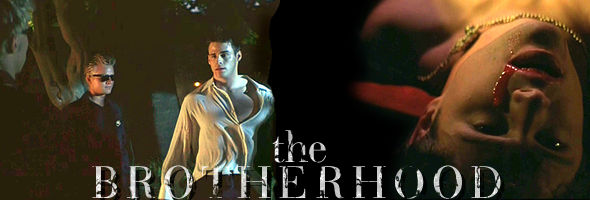 A vampire film more by suggestion than action, The Brotherhood tosses in some riffs on the old Dorian Gray story and sets it all at a sunny college campus. Newbie Chris (soap actor Samuel Page, acting here as "Nathan Watkins") winds up sharing a dorm room with twitchy Dan (Josh Hammond) but catches the eye of frat boy Devon (Bradley Stryker), who tries to lure him into going Greek. Looking like refugees from an Abercrombie & Fitch photo shoot, the frat boys make Chris feel welcome but have darker designs in their nasty, beer-guzzling hearts; namely, they're a bunch of immortal bloodsuckers who need to find new blood and new bodies keep going through the centuries. Meanwhile pretty coed Megan (Elizabeth Burderman) and Dan try to uncover the mysteries of this infernal youth order, while Devon initiates Chris with one of the more perverse three-way scenes in horror history.