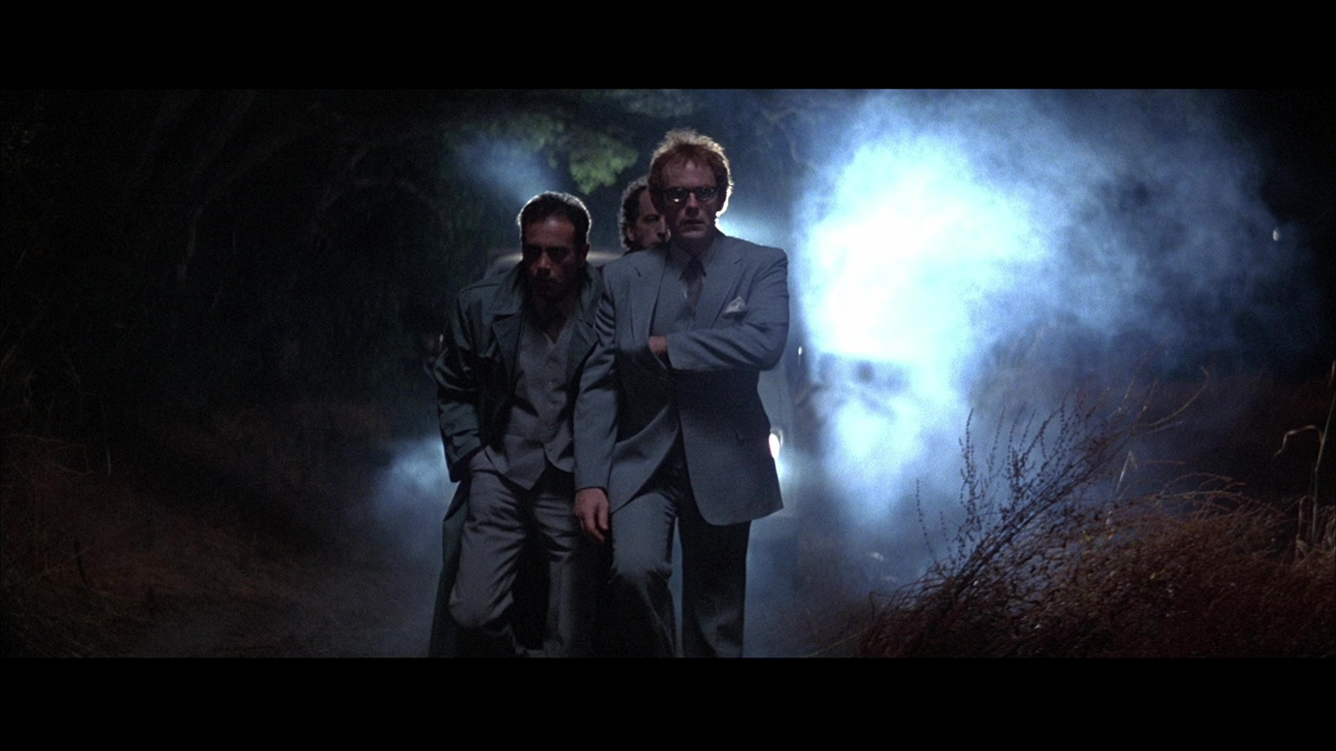 In 2015, Arrow Films mounted a more ambitious Blu-ray release in the UK with a more generously compressed rendition of the MGM master, looking quite beautiful and doing a fine job of handling the tricky dark, foggy scenes with aplomb. It looks like some additional clean up has been provided as well since it doesn't look quite as dirt-riddled as the prior release. The 5.1 DTS-HD MA audio sounds great as well, with a lot of oomph for the explosions and the catchy music score. (Yes, you'll really want to crank up that last aqueduct walk as loud as you can stand.) Carried over here are the commentary, original opening, deleted scenes, trailers, the "Buckaroo Banzai Declassified" vintage featurette with the cast and crew, and trivia track, while some substantial new goodies have been added as well. Chief among them are new interviews with Weller (16 mins.) and Lithgow (13 mins.) including more of a focus on the film's enduring appeal, a very funny 45-minute Q&A with Weller and Lithgow moderated by Kevin Smith at Lincoln Center, a different expanded gallery, and a new Matt Zoller Seitz visual essay about the film's disparate literary and artistic influences. (Yep, there are a lot of Thomas Pyncheon nods here.) The usual reversible packaging also comes with a liner notes booklet containing an essay by James Oliver.
