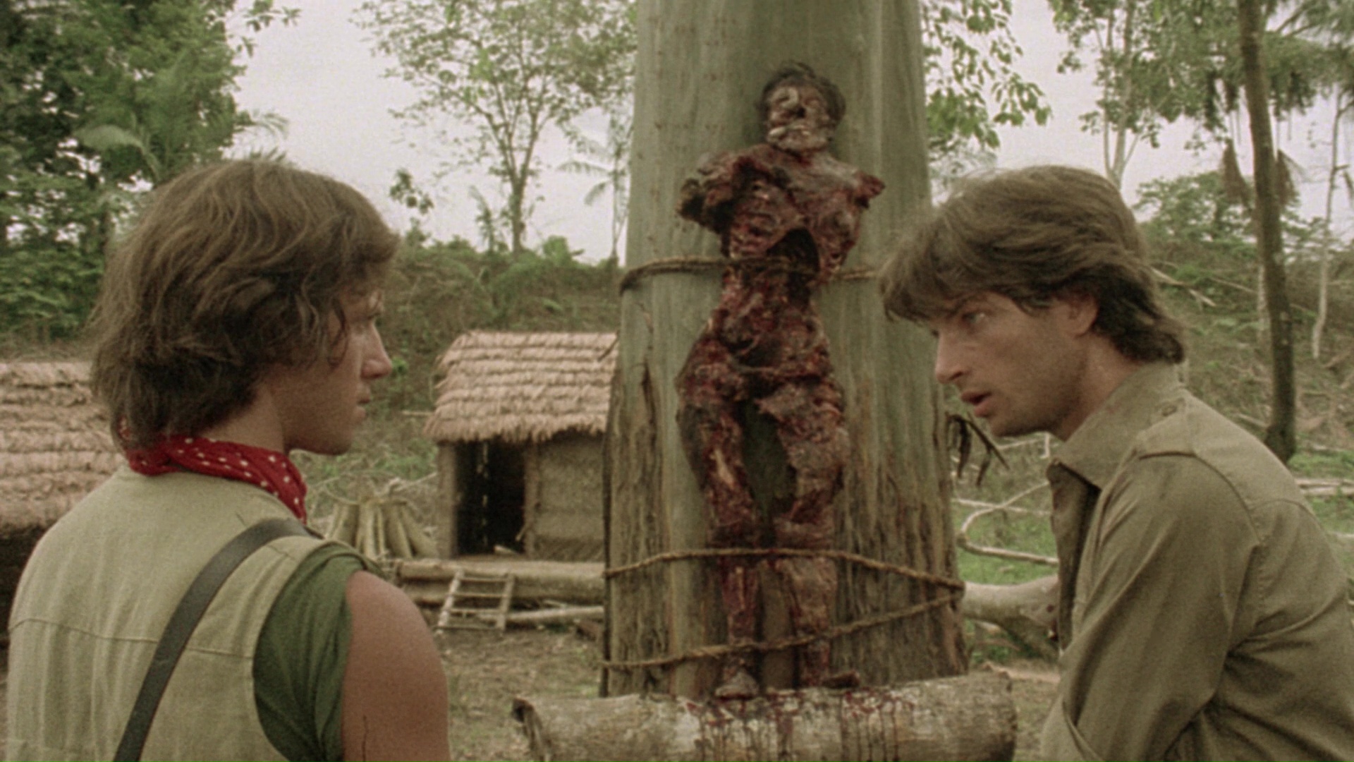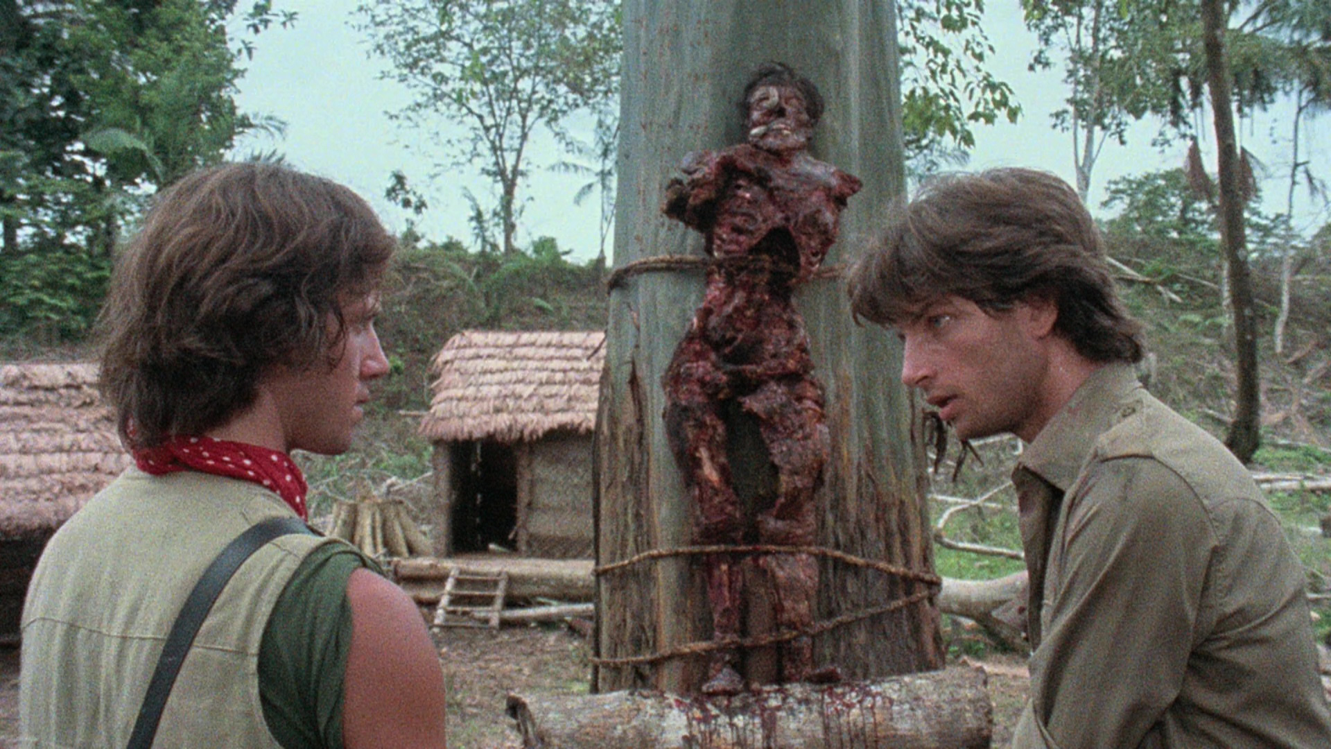 entirely. Touted as being "restored and re-graded from a new 2K scan," it certainly looks different now with a dingier, more yellow appearance, with some slight framing variations throughout and bit more vertical squeezing. It certainly feels a lot sleazier. An LPCM English mono track is offered. Of course, this wouldn't be a worthy release without one of Lenzi's colorful, self-aggrandizing interviews, and here you get one of his very last ones before his death. "A Taste of the Jungle" (21m49s) features the filmmaker in feisty form chatting about his ascension during a hunger for commercial Italian films over arty Antonioni ones, the need to imitation American hits, the glory days of working with actors like Ivan Rassimov, and the international demand for cannibal films that resulted in his most infamous films including one shot "at the crossroads of the drug industry." He also throws some heavy shade at Radice, De Selle, and Kerova for being ashamed of the film and defends his depiction of the natives, plus a hilarious bit about how he found out about the film's success in the U.S.; in short, if you're a fan of the film, this juicy extra will be worth the price tag by itself. (Oh, and of course it ends with the obligatory reference to Quentin Tarantino.) If that weren't enough, you also get "Hell in the Jungle" (33m16s) with Radice, candid as always and now sporting a huge, bushy beard, sharing his unvarnished thoughts on accepting the script for money and not liking his performance ("I just shout all the time"). He isn't a big fan of shooting in the jungle, either, where "even the dolphins are cruel," and there's a reprise of the infamous pig story in all its nasty glory as well as tales of cocaine hunting around the premises. A restoration demonstration (3m30s) shows before and after samples of the work done on the original 16mm negative, which was apparently very green and dark, and a Lenzi photo gallery features a glimpse of him at work on the film. The first limited edition features a numbered sleeve for the hand-finished packaging, with an appropriate vomit bag included for you and your fellow viewers.