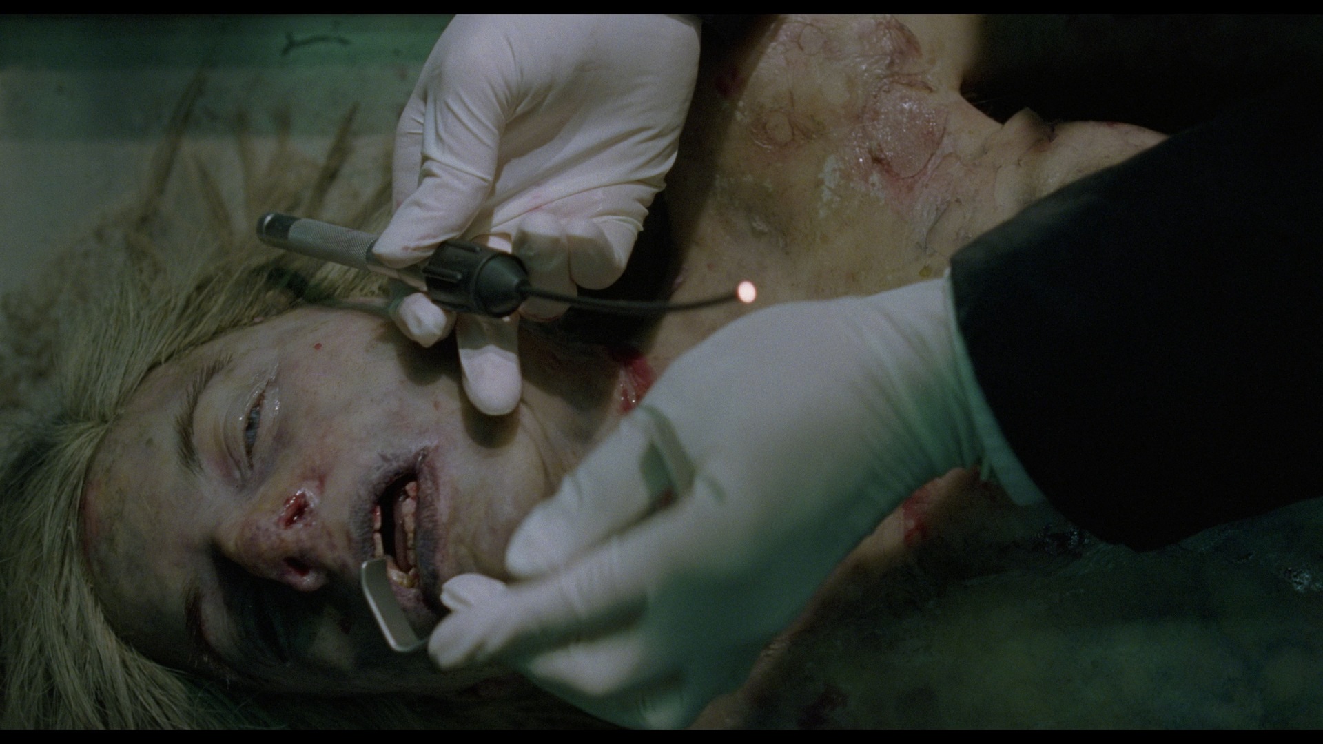 Five years later in 2025, Vinegar Syndrome issued the film as a UHD and Blu-ray set featuring a new 4K scan from the 35mm original camera negative (with English credits and on-screen computer sequences). The HDR-compatible Dolby Vision grading on the UHD is the most robust presentation so far with punchier colors, but the Blu-ray is no slouch either; this is the healthiest the film has looked with additional image info as well. The original English track is presented in DTS-HD 5.1 here (sounding excellent) as well as the Italian 5.1 dub with English-translated or SDH optional subtitles. The commentary is ported over here along with the Dario Argento, Ferrini, Geleng, and Fiore Argento interviews and the making-of featurette (speed corrected to 9m18s). You also get four new interview featurettes starting with "Playing the Game" (26m44s) with Rocca, who looks completely different here, looking back at being "freaked out" by Argento movies in her youth, her immediate positive reaction to meeting him, the inner nature of her character, an allergy-related bit of method acting, and their continued friendship after the film. In "Digital Nightmare" (19m10s), Simonetti goes into the inspiration he took from the premise of the film, his collaborative music listening with Rocca, the creation of the soundtrack after coming up with demos, the influence of Isao Tomita and Wendy Carlos, and his satisfaction with the end result to this day even if it still divides some fans. Then Sergio Stivaletti appears in "Like in War (10m4s) covering the make-up effects including the influence of the cold atmosphere, the concoction of the dead body for the autopsy scene, the execution of the memorable garden sequence, and how the cinematography interacted with his work. Finally in "Sharp Cuts" (20m4s), editor Walter Fasano chats about his admiration of Argento, the impact of censorship on his films, his own cameo in this one, the arduous work hammering the film into shape after the first cut, the cop chatter material deleted along the way, and the precision of cutting the poker sequences so each one felt different.