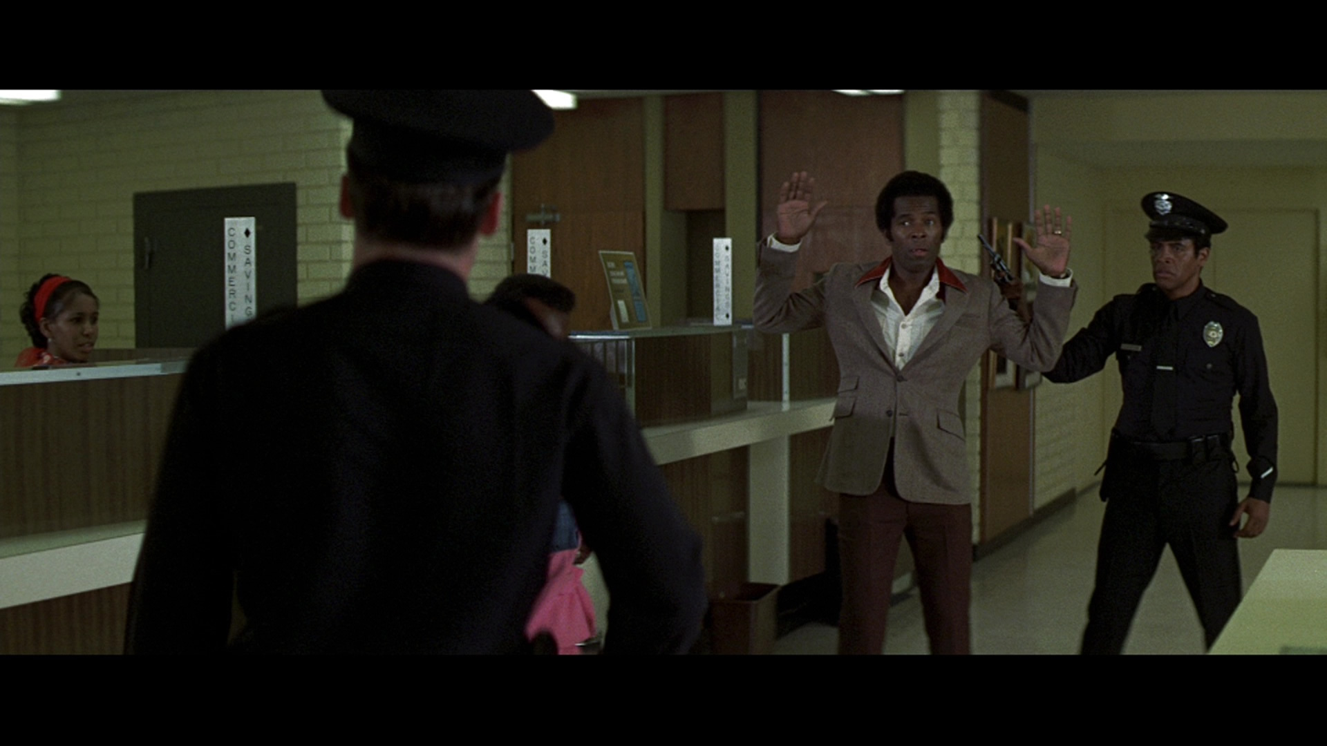 A region-free UK Blu-ray and DVD set arrived soon after in early 2017 from Indicator, culled from the same excellent Sony HD transfer (which had been airing for the past couple of years on its HD Sony Movie Channel channel ridiculously cropped to 1.78:1). Typically for the label the film itself is given a very generous compression job that tackles the high demands of the source material quite well, with the shadowy and sometimes murky style popping through about as well as originally intended. Color timing, framing, and overall quality appear to be exactly the same as the French release apart from a slight notch up in grain detail due to a slightly higher bit rate. The DTS-HD MA English mono track sounds crystal clear, with optional English SDH subtitles provided. Extras include the trailer, Super 8 version and “Cop Stories” documentary, while the 3,000-united limited edition also includes a liner notes booklet by Nick Pinkerton, who dissects the history of the LAPD on film and television as well as the changes screenwriter Stirling Silliphant made to the source novel, and Jeff Billington, who dives into and comments on some critical reactions to both the film and novel, with the text from the original UK production notes added in as well.