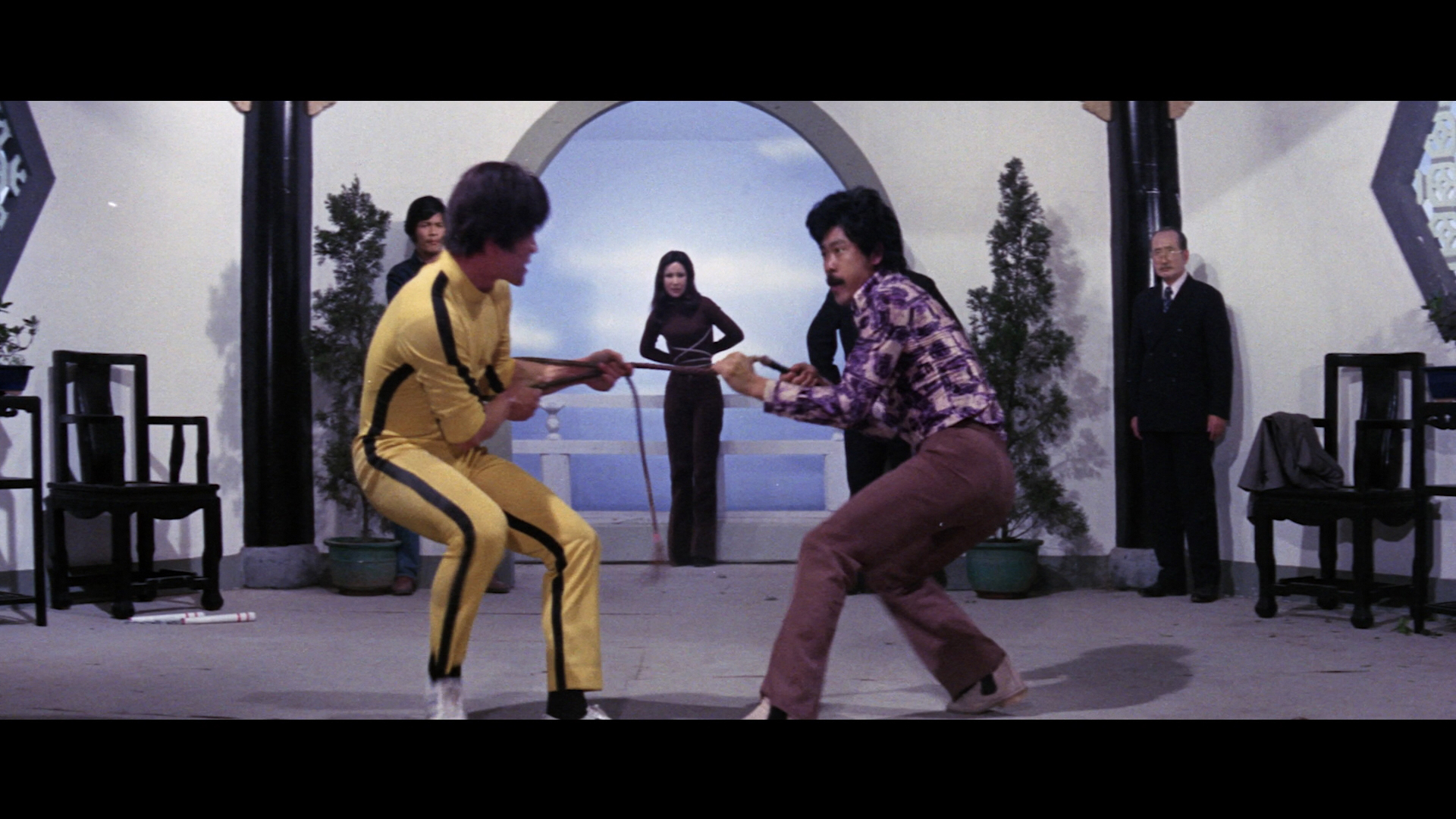 time as the real article. It's an obvious attempt to ape the overall original premise of Game, which focused on Lee fighting his way up a high-rise building through an escalating series of skilled opponents, except here we have Bruce Le doing the honors. The story has something to do with Chinese security trying to retrieve some stolen secrets at the dawn of World War II by sending a semi-reluctant recruit to punch and kick his way to the top floor of a building with obstacles along the way including Bolo Yeung and a really wild scene involving reptiles. Though it didn't get quite as much theatrical play as some of its peers, this one is loads of fun if you're in the right mindset with an avalanche of combat scenes that make you stop trying to follow any kind of linear storyline after the first half hour or so. The quality on this Blu-ray release is leagues better than the terrible copies that have proliferated on VHS and DVD, here featuring a nice 2K scan of a German interpositive from Spectacular Films (with a 16mm American TV print title card used at the beginning). Worth provides a partial commentary laying out the subset of Game of Death-sploitation and the gist of Le's career up to and including this film, while Chi Ling Chui provides a scene specific commentary for his scenes recalling the martial arts training involved and memories of his costars. He also turns up on camera for "Kung Fu Movie Hustle" (14m49s) to talk about how Lee's example helped to "spread kung fu all over the world" with contributions he and his peers were very happy to follow in countries like Singapore and Malaysia. "Talking a Good Game" is the first of multiple roundtable discussions in the set with Worth and kung fu movie experts Tatevik Hunanyan, John Kreng, and Ron Strong chatting about the attempts to trick audiences into thinking they were seeing Game of Death years before it actually existed as well as the few iconic images of Bruce in the film that fueled so many of these cash-ins. You also get a Worth intro (1m24s) featuring a very funny opener poking fun at the Lee vehicle's notorious mirror gag, plus the English trailer (as The King of Kung Fu) working overtime to convince you this is a new Lee film.