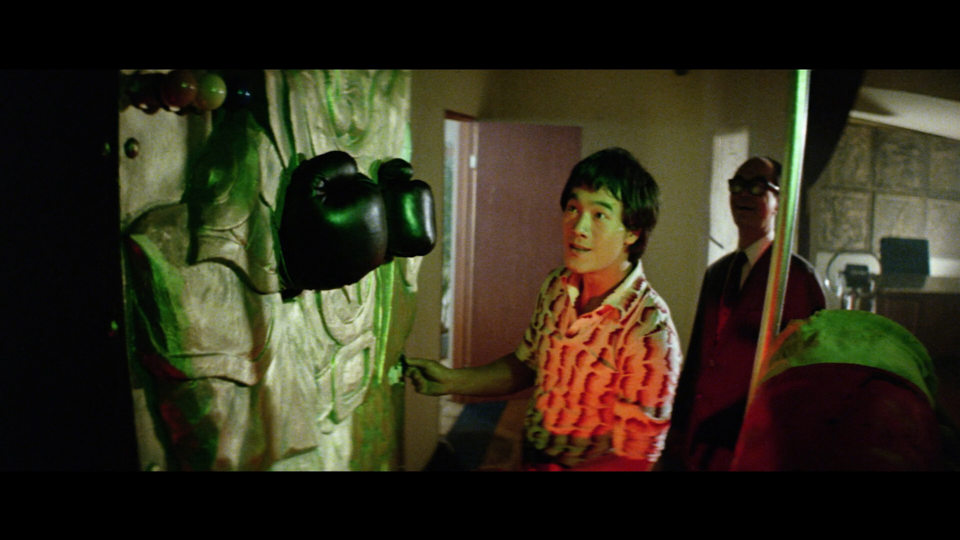 double duty as director and star here. When a villainous organization devises a plan to render the world's population sterile and wipe out the population (just like the Roger Moore Bond movies around the same time), CIA agent Huang Lung (Le) must team up with co-agent Richard Cannon (Richard Harrison, of course) to stop the madness. Naturally they accomplish this by beating up and/or seducing everything in sight, all with barely a single thread of a plot to hold the nonsense together. Totally irrational and packed with excessive nudity and violence, this is kung fu fun of the highest order. This one has been treated better than most on home video and the Blu-ray is no exception, with the 4K scan from the original negative looking quite spectacular here. Worth joins forces here for a commentary with C. Courtney Joyner, and they seem to be having a blast reacting to the film's insanity and covering the essentials of Le, Randall, Harrison and company. Worth also supplies another intro (1m27s), followed by the English trailer.