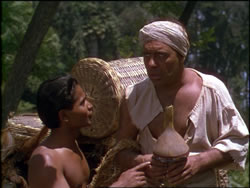 Sweet Pacific islander Tollea is engaged to the burly sailor Ramu (Hall), who hangs around with a very young boy, Kado (Sabu), and a chimp in diapers for company. When Tollea is snatched off their ship, he learns that she has a diabolical twin sister, Naja, who's the pampered princess of a remote island whose denizens worship a cobra god and murder anyone who sets foot on their shores. Apparently Naja is none too pleased that her sister could swipe the throne if she so chooses, so it's execution time... and when Ramu winds up in the villainess' clutches as well, she decides to take him for herself, too.