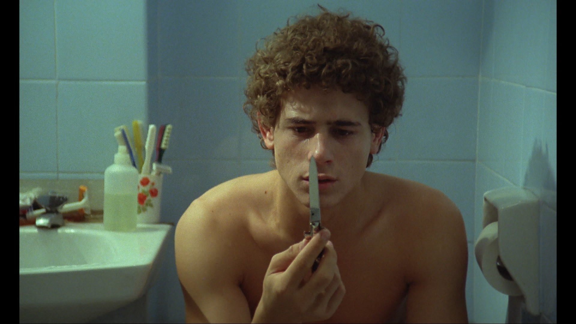 Seen today, Pals is a priceless snapshot of teen life in Spain including the burgeoning video game culture, the casual network of drug dealers ranging from older adults to very underage kids, and life on the streets where impromptu guitar numbers help pass the time away from stressful home lives. As with the director's other quinqui films there's a lot of casual nudity and frankness here (including some comedy relief involving the masturbatory habits of José's brothers and a candid treatment of abortion), though there actually isn't much sex at all in the film. There's also a smart focus on the social divisions between classes, with José's family seen as "trash" by his friends' parents which leads to the film's wildest melodramatic high point during a hallway parental showdown. All three of the leads are very good and convincing in their roles, with the nonprofessional Manzano once again proving his ease in front of the camera. Sadly both he and Antonio Flores would die of drug overdoses in the first half of the '90s, which gives the film more of a bittersweet edge than it already