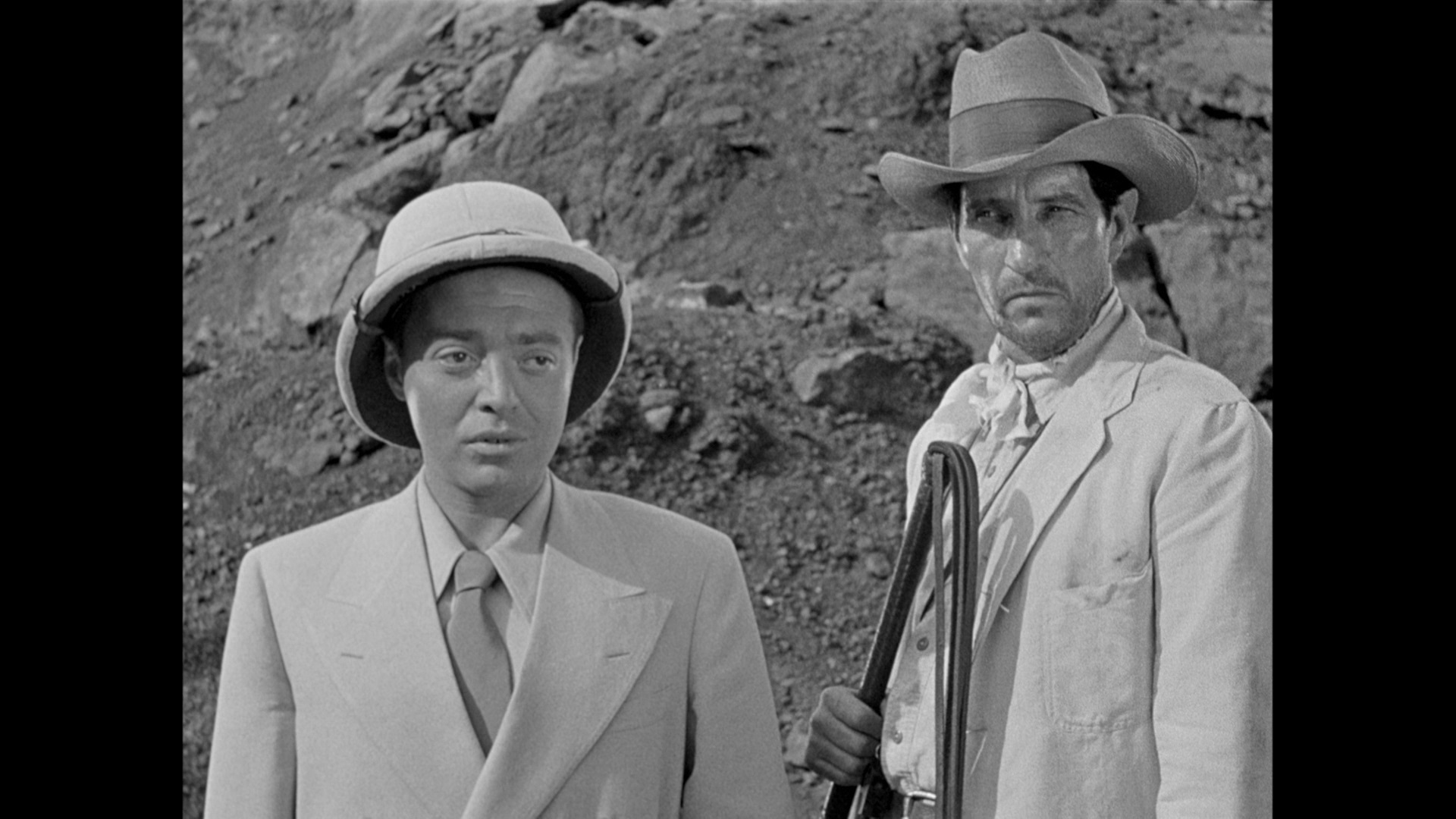 on this disc, the irresistibly titled Island of Doomed Men, turns the spotlight over to the always welcome Peter Lorre, here at his slimiest as a slave laborer overseeing an illegal rock-laden camp off the coast of California (what, on Catalina?) populated by ill-fated parolees. Sent undercover is handsome fed Mark Sheldon (Wilcox), who takes on the persona of the ingeniously named criminal "John Smith" who, after doing a stint of time including hard labor, ends up on the deadly island run by monkey-phobic Stephen Danel (Lorre) and his ambivalent wife, Lorraine (Hudson).