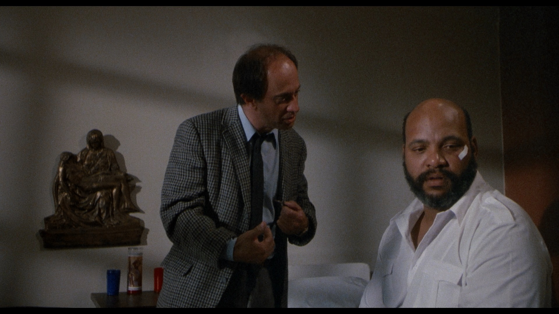 Confined to a mental institution in Los Angeles where everyone seems to only drink Shasta, Robert Knight (White) thinks he's a priest and even dresses up appropriately on multiple occasions, much to the annoyance of the corrupt, sadistic, or negligent staff (including future The Fresh Prince of Bel-Air star James Avery) who resort to unmotivated shock treatment on occasion. Robert insists that he saw his wicked uncle